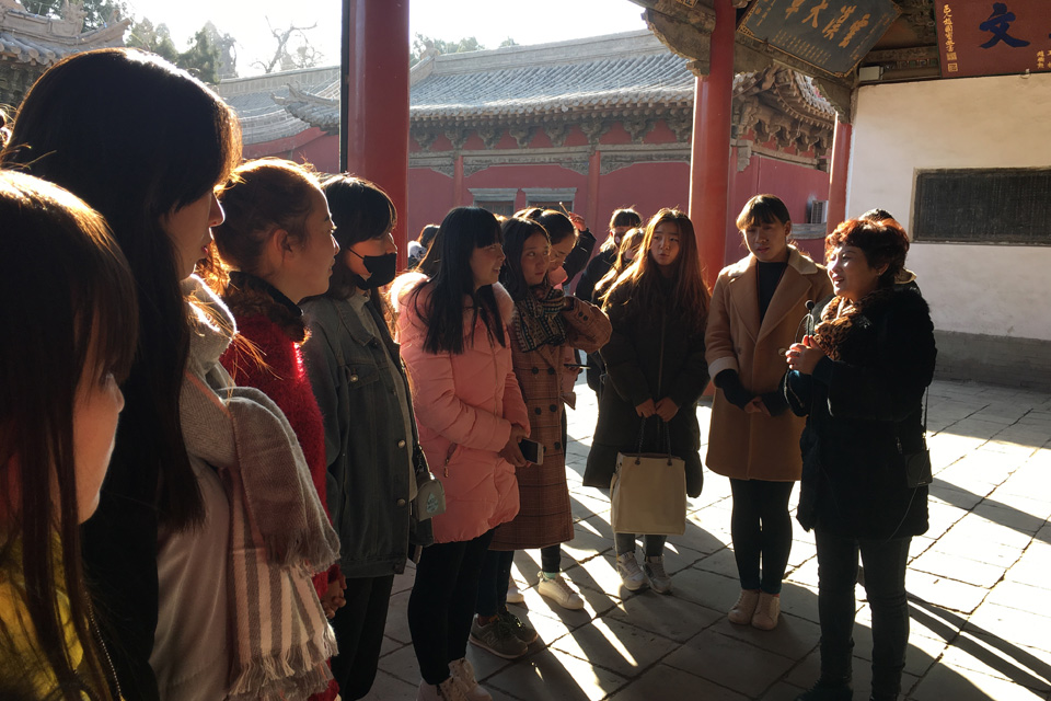 同學們重點參觀了天梯山、武威文廟,神州荒漠野生動物園、武威雷臺景區(qū),每到一處景區(qū),先由景區(qū)講解員進行集中講解,然后同學們以小組為單位在景區(qū)內(nèi)進行現(xiàn)場模擬導游講解,帶隊老師再對各組講解逐一點評分析。活動中,同學們滿懷著激動與新奇,大膽地展現(xiàn)自我風采,模擬致歡迎辭、歡送詞、沿途講解、景點講解等導游帶團程序?,F(xiàn)場既有熱烈的討論,也有途中車上及景點各組精彩的講解,實習所用的大巴車成為“移動的課堂”。