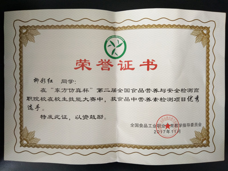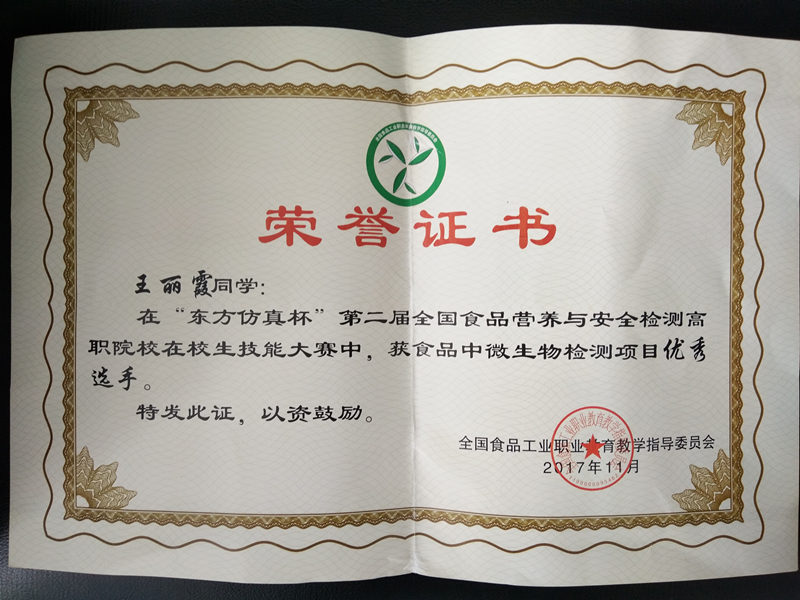 選派2名學生參加全國食品工業(yè)職業(yè)教育教學委員會主辦的第二屆全國食品營養(yǎng)與安全檢測大賽,參賽的項目分別為“食品中微生物檢測”和“食品中營養(yǎng)素檢測”。備賽期間,指導老師們帶領參賽選手放棄休息時間,迎難而上,認真解讀大賽規(guī)程,研究備賽方案,有針對性地制定訓練計劃,高標準、高質(zhì)量,嚴要求地模擬比賽環(huán)境,磨練參賽學生的臨場應變能力。經(jīng)過師生的不懈努力,參賽的兩個項目均獲得優(yōu)秀獎。通過參加此次比賽,全面提高了學生的實踐操作技能和臨場應變能力,鍛煉了學生膽識和膽量,開闊了眼界,達到了“以賽促學,以賽促教”的目的。