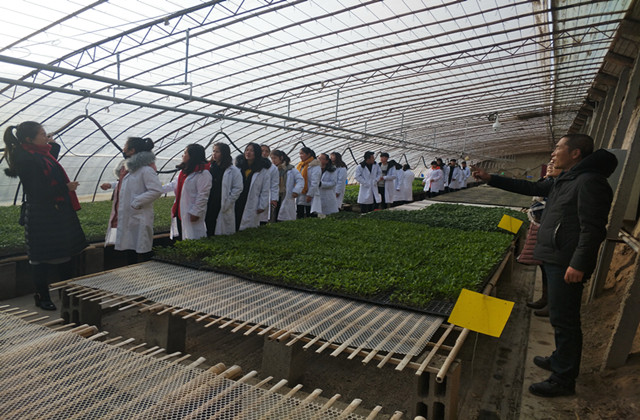 金大鵬專業(yè)合作社張經(jīng)理帶領(lǐng)師生參觀了自動化育苗生產(chǎn)車間、育苗大棚等。參觀過程中,張經(jīng)理向?qū)W生詳細(xì)介紹了自動化育苗的流程、自動化灌溉設(shè)施、引進(jìn)的蔬菜新品種、溫室管理新技術(shù)等。藍(lán)天花卉公司袁經(jīng)理向?qū)W生介紹了常見的花卉品種及生活習(xí)性,學(xué)生們邊走邊看邊記,學(xué)習(xí)熱情異常高漲,真正實現(xiàn)了在做中學(xué),學(xué)中做。