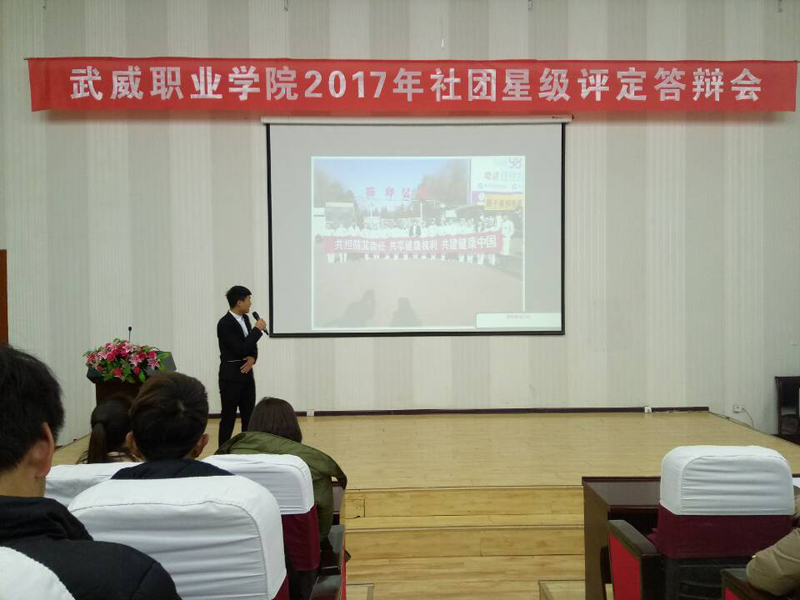 本次星級評定分為初評和終評兩個階段。初評階段,由社團(tuán)聯(lián)合會主席團(tuán)成員和各社團(tuán)負(fù)責(zé)人根據(jù)《武威職業(yè)學(xué)院學(xué)生社團(tuán)星級社團(tuán)評定辦法》,結(jié)合各學(xué)生社團(tuán)上報的活動資料和實際工作情況進(jìn)行打分評比,根據(jù)評分高低,前10個學(xué)生社團(tuán)入圍星級評定答辯會。答辯會現(xiàn)場,各社團(tuán)通過PPT、視頻等形式展示過去一年里開展的活動和取得的成績,參會人員積極提問互動,形成相互學(xué)習(xí)、相互交流的良好氛圍。
