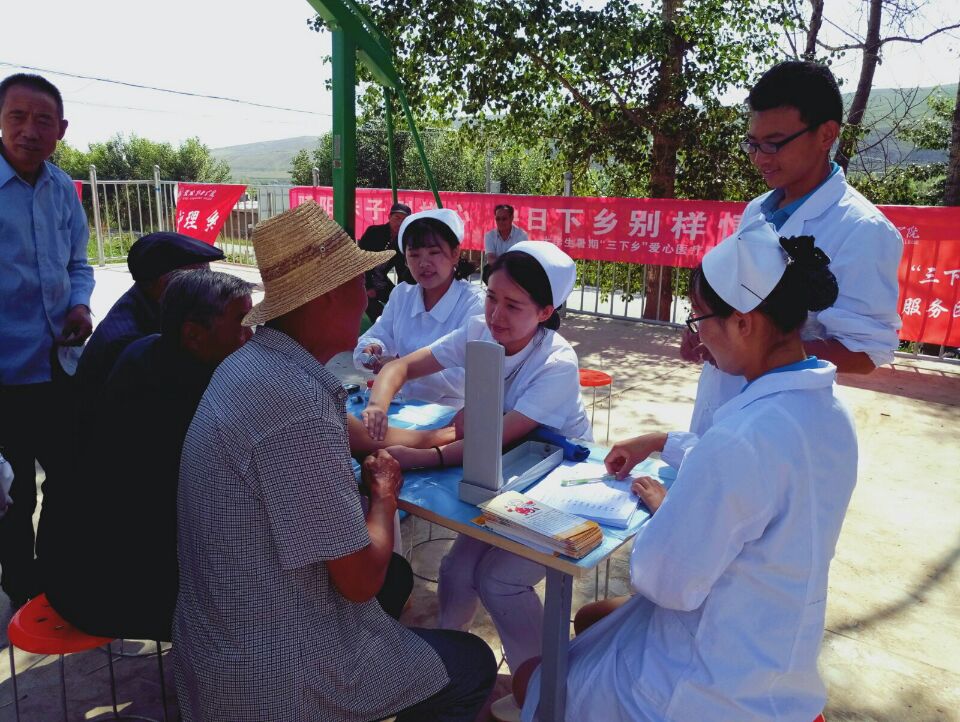 2017年暑假期間,護(hù)理系積極響應(yīng)院團(tuán)委暑期“三下鄉(xiāng)”社會實(shí)踐活動的號召,組織11名學(xué)生成立了“愛心醫(yī)療服務(wù)團(tuán)”,赴武威市新井村、張義鎮(zhèn)、武威第十一中學(xué)、小洪溝河灣村、沙金臺村等多地開展了為期6天的社會實(shí)踐活動。