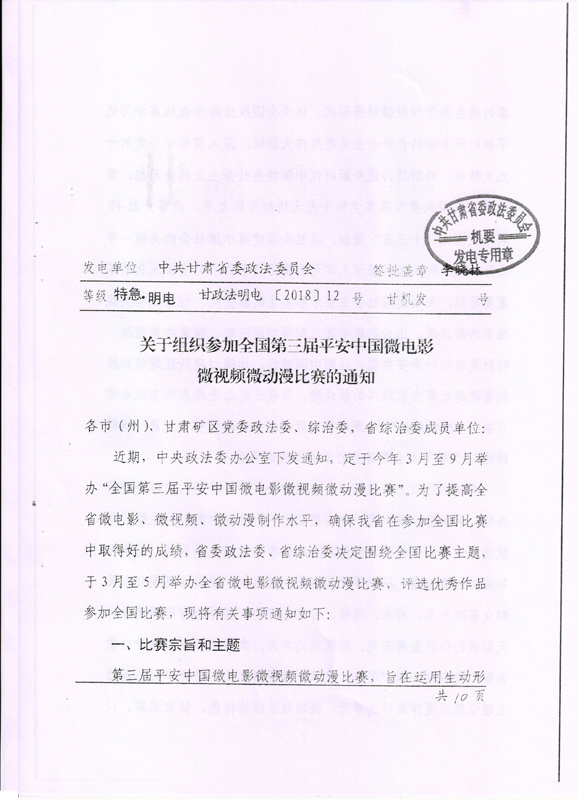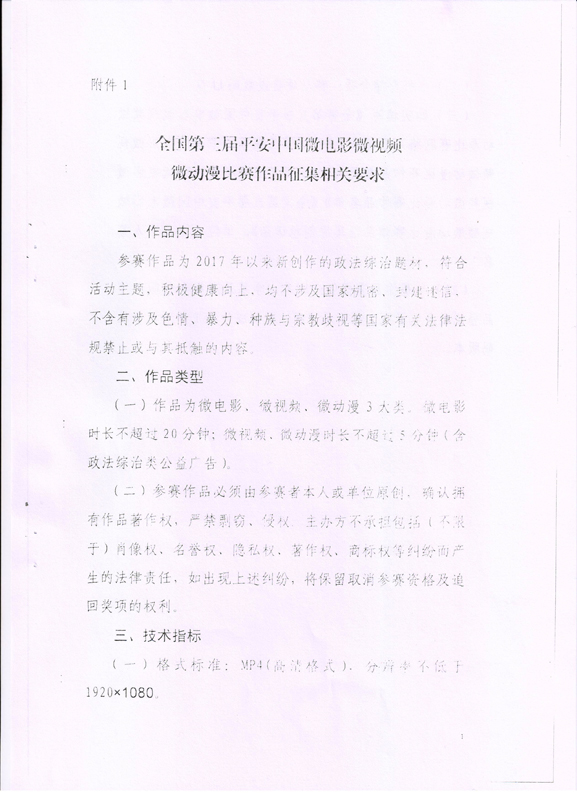 關(guān)于組織參加全國第三屆平安中國微電影微視頻微動漫比賽的通知