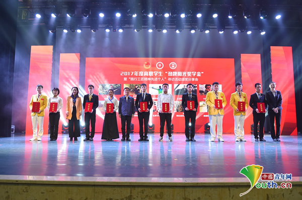 團中央學校部副部長李驥出席活動并講話,他表示,希望通過“勁牌陽光獎學金”獲獎?wù)叩姆窒?,能夠促進職業(yè)院校學生更加明確自己的人生使命,能夠在時代的大潮中找準人生發(fā)展方向,能夠用自己的綿薄之力書寫中國夢的實現(xiàn)。