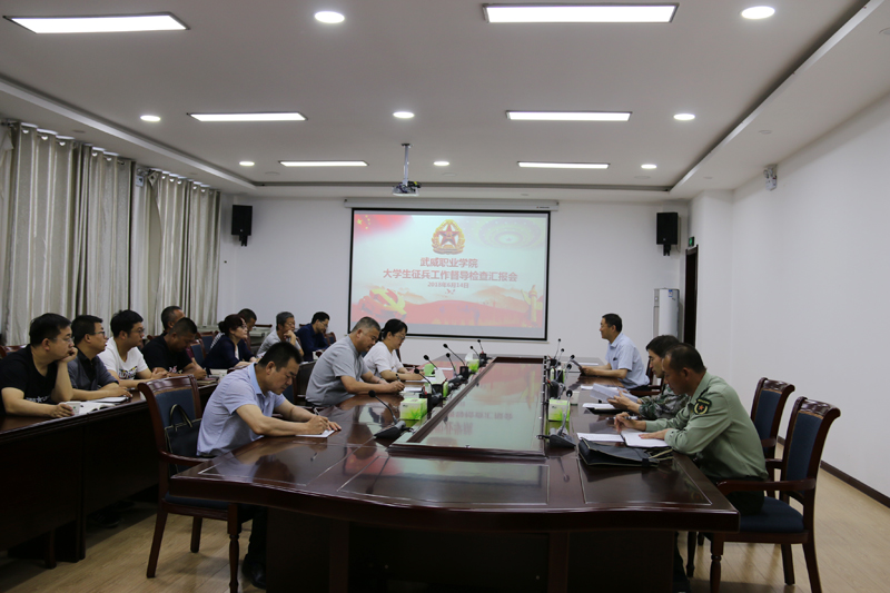 6月14日上午,由武威軍分區(qū)副司令員丁全綱帶隊(duì),市教育局督學(xué)張應(yīng)偉、涼州區(qū)人武部政委丁俊強(qiáng)、涼州區(qū)人武部副部長(zhǎng)韓小偉、涼州區(qū)西關(guān)街武裝部部長(zhǎng)趙光慶一行5人到我院督導(dǎo)檢查征兵工作,學(xué)院副院長(zhǎng)田迎春、學(xué)工處處長(zhǎng)王守云陪同檢查。各系黨總支書(shū)記、輔導(dǎo)員參加了匯報(bào)會(huì),田迎春主持會(huì)議。