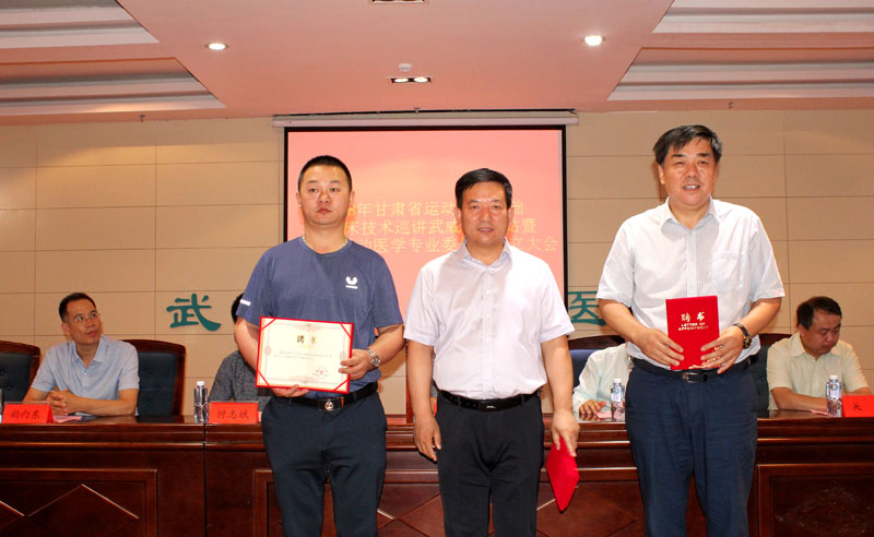 武威市衛(wèi)計委副主任張學(xué)龍,西安市紅會醫(yī)院運動醫(yī)學(xué)診療中心主任鄭江教授,西安交通大學(xué)第二附屬醫(yī)院骨科主任時志斌教授,蘭大二院運動醫(yī)學(xué)科主任吳萌教授,蘭大二院骨科主任醫(yī)師韻向東教授,武威市醫(yī)學(xué)會副會長、學(xué)院直屬附屬醫(yī)院工會主席李文輝等同志出席學(xué)會成立大會,并向新任武威市運動醫(yī)學(xué)專業(yè)委員會主委胡斌祥,副主委王世中、牛存良、康萬年頒發(fā)聘書。