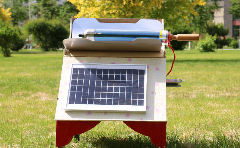“六自由度撿球機(jī)器人”作品是基于STM32F103的六自由度機(jī)械臂,運(yùn)用D-H法對機(jī)械臂進(jìn)行數(shù)學(xué)建模,通過MatLab構(gòu)建運(yùn)動仿真模型,通過軟件編程實(shí)現(xiàn)機(jī)械臂的單自由度、多自由度及基本的運(yùn)動規(guī)劃功能的機(jī)器人。“太陽能環(huán)??緺t”是一款基于太陽能光熱、光伏利用的新型太陽能環(huán)??緺t。用戶可將食物切成小塊用錫紙包裹后,放置于烹飪抽屜之中,烹飪抽屜置于真空集熱管中,通過槽型拋物面聚光集熱器聚焦太陽直射光,產(chǎn)生高溫,加熱真空集熱管里面的食材。這種烤爐綠色、健康,節(jié)能、環(huán)保、熱效率高。