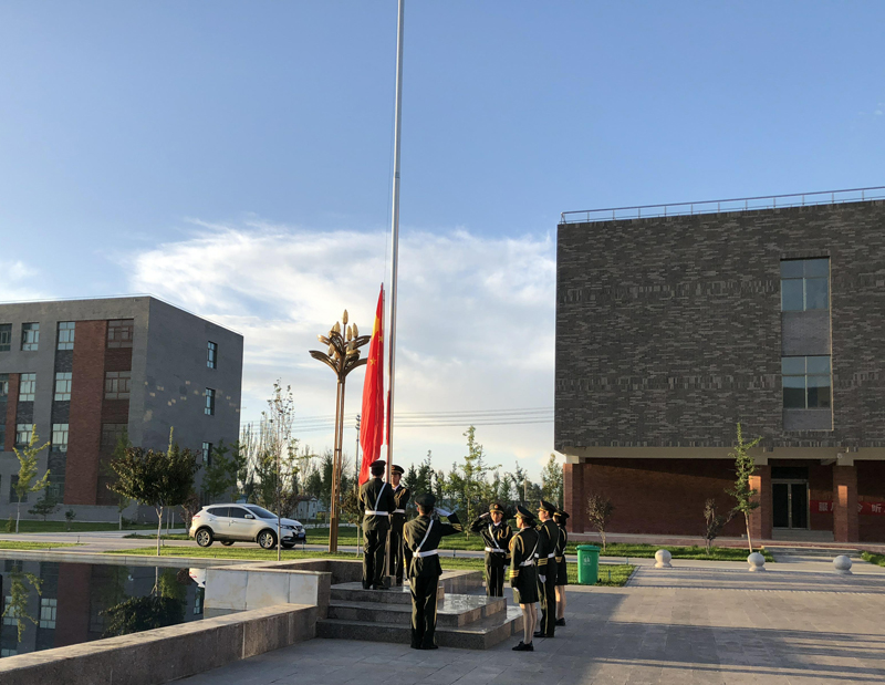 師生們精神飽滿,抬頭挺胸,伴著《義勇軍進行曲》的響起,唱國歌、行注目禮,莊嚴肅穆。