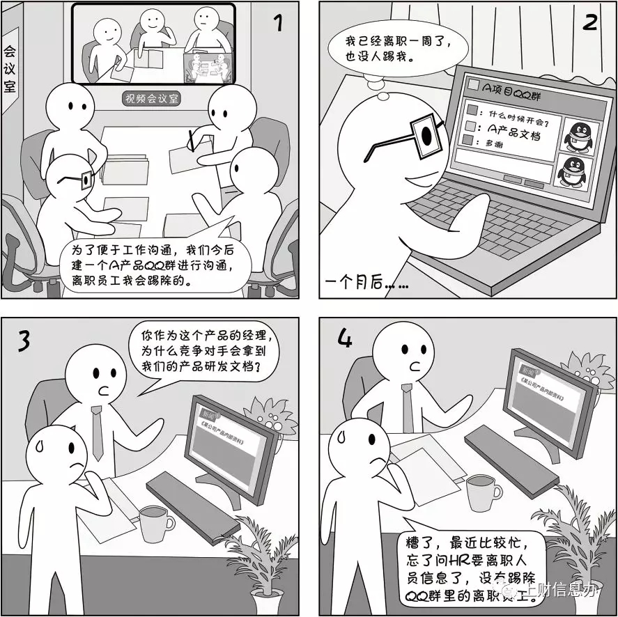2 公共即時(shí)通訊平臺(tái)上的聊天群(如微信、QQ)中,管理員要嚴(yán)格審核加群人員,并及時(shí)踢出離職或離開項(xiàng)目組人員。