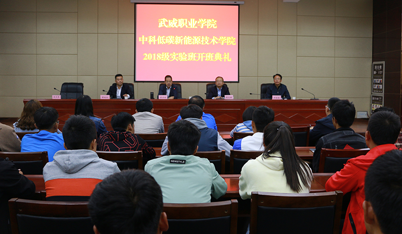 9月17日晚,武威職業(yè)學院中科低碳新能源技術學院2018級“實驗班”開班典禮在學院行樹樓北側報告廳隆重舉行。學院副院長翟存祥、能源工程系黨總支書記黃文源、能源工程系副主任黃述杰、機械工程系副主任申賓德、實驗班全體任課教師和同學參加了開班典禮。典禮由能源工程系副主任黃述杰主持。
