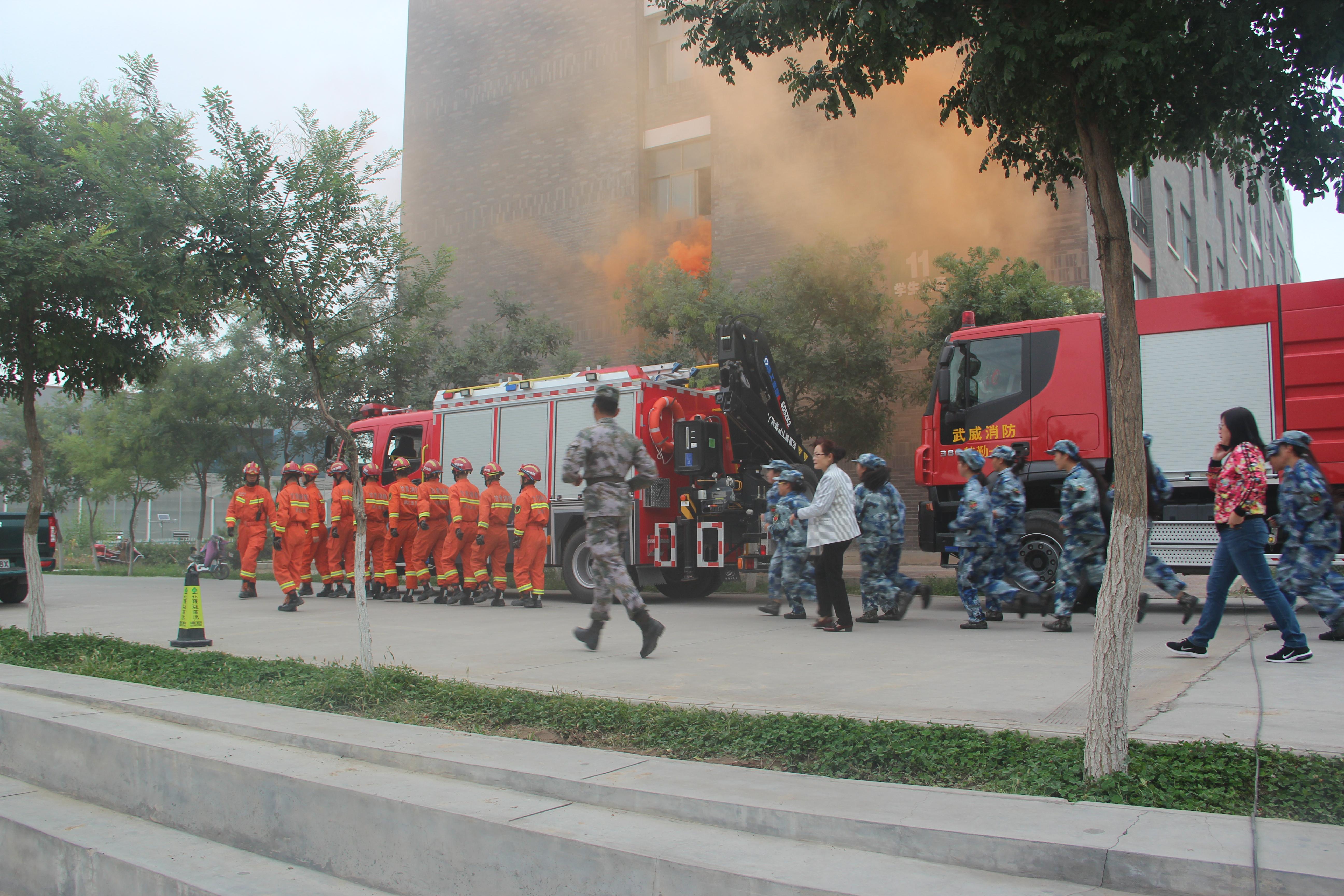 為進(jìn)一步加強校園安全工作,增強師生的消防安全意識,提高師生抵御火災(zāi)和應(yīng)對緊急突發(fā)事件的能力,9月13日上午,學(xué)院聯(lián)合武威市公安消防支隊舉行了2018年秋季消防應(yīng)急疏散演練。學(xué)院副院長王永緒及相關(guān)部門、單位負(fù)責(zé)同志現(xiàn)場觀摩,約4000名2018級新生、學(xué)生管理工作人員、軍訓(xùn)教官、食堂從業(yè)人員參加了演練?。
