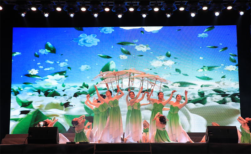 晚會(huì)中,在音樂(lè)學(xué)科專業(yè)頗有建樹(shù)的幾位老師表演了高水準(zhǔn)的器樂(lè)合奏《贊歌》,讓師生陶醉于器樂(lè)演奏的優(yōu)美旋律和意境,贏得了全場(chǎng)經(jīng)久不息的掌聲。大學(xué)生藝術(shù)團(tuán)舞蹈隊(duì)和聲樂(lè)隊(duì)表演的歌伴舞《紅旗飄飄》《美麗中國(guó)》激情四射、唯美動(dòng)聽(tīng),詮釋了青年學(xué)子對(duì)祖國(guó)的熱愛(ài)和深情祝福。人文藝術(shù)教育系選送的現(xiàn)代舞《追逐夢(mèng)想》用歡快的舞步展現(xiàn)了青年最富有朝氣、最富有夢(mèng)想的精神風(fēng)貌,《茉莉花開(kāi)》更是讓師生陶醉于傳統(tǒng)舞蹈的優(yōu)美意境。雙人舞表演《鄉(xiāng)·遠(yuǎn)方》舞蹈動(dòng)作豪放、粗狂但不失委婉、細(xì)致,為我們呈現(xiàn)出“天之驕子”的氣概。校園好聲音教師組冠軍和學(xué)生組冠軍合唱的歌曲《你是我的眼》傳唱了職院好聲音,定格了大家的青春記憶。校園二把手樂(lè)隊(duì)帶來(lái)的歌曲《平凡之路》引起全場(chǎng)轟動(dòng),將晚會(huì)推向了高潮,同學(xué)們紛紛點(diǎn)亮了自己的手機(jī),現(xiàn)場(chǎng)匯成了一片充滿歌聲的“星海”。
