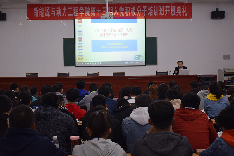 10月14日晚,新能源學(xué)院辦公室黨支部書記任陶在明德樓001教室作學(xué)習(xí)黨的十九大精神主題報(bào)告,98名入黨積極分子和45名發(fā)展對(duì)象認(rèn)真聆聽(tīng)了此次報(bào)告。