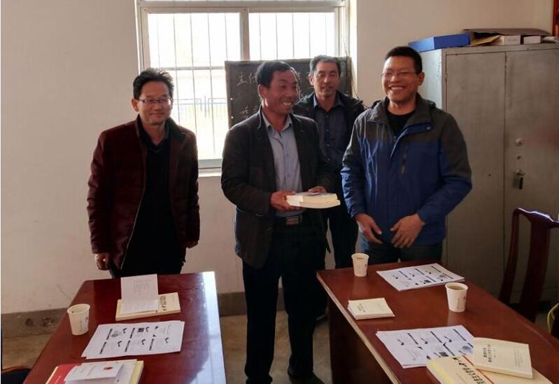 黨課結(jié)束后,趙明書(shū)記和王永緒副院長(zhǎng)向村委會(huì)贈(zèng)送了《習(xí)近平的七年知青歲月》《習(xí)近平新時(shí)代中國(guó)特色社會(huì)主義思想三十講》《怎樣做合格黨員》《馬克思主義哲學(xué)十講》《中華人民共和國(guó)憲法宣傳手冊(cè)》等書(shū)籍。