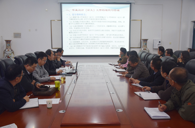 畢業(yè)設(shè)計是學(xué)生在校學(xué)習(xí)的最后一個環(huán)節(jié),也是最重要的一個環(huán)節(jié)。使學(xué)生由學(xué)校學(xué)習(xí)理論知識向社會實踐過渡轉(zhuǎn)變的一個重要環(huán)節(jié),也是對所學(xué)知識綜合應(yīng)用的一個過程。副院長姚翔飛要求全體教師認真學(xué)習(xí)領(lǐng)會,深入研究,將各位專家教授講解的內(nèi)容內(nèi)化吸納,積極承擔(dān)并高質(zhì)量的完成學(xué)院2017屆畢業(yè)生的畢業(yè)設(shè)計指導(dǎo)工作。為學(xué)院不斷提升教育教學(xué)水平,奠定堅實的基礎(chǔ)。