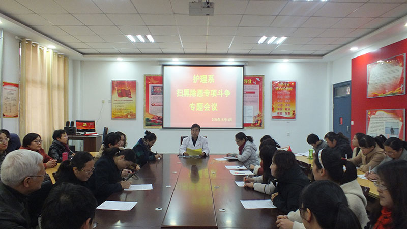 11月14日下午,護理系在明遠樓103會議室召開了掃黑除惡專項斗爭專題會議,傳達學(xué)習(xí)學(xué)院關(guān)于掃黑除惡專項斗爭工作會議精神,會議由系黨總支書記張建輝主持,護理系全體教師參加了本次會議。