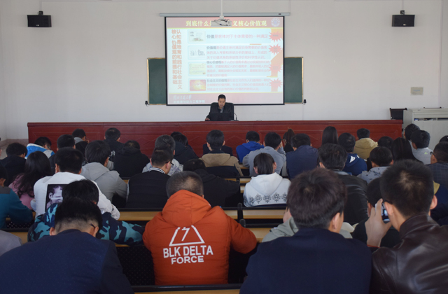 翟存祥從社會(huì)主義核心價(jià)值觀的時(shí)代背景、社會(huì)主義核心價(jià)值觀的頂層設(shè)計(jì)、核心價(jià)值觀與核心價(jià)值體系的關(guān)系、社會(huì)主義核心價(jià)值觀的系統(tǒng)培育、社會(huì)主義核心價(jià)值觀的全面踐行等五個(gè)方面,分析了中國共產(chǎn)黨價(jià)值取向的發(fā)展歷程、培育和踐行社會(huì)主義核心價(jià)值觀的重要性和迫切性,培育和踐行社會(huì)主義核心價(jià)值觀對(duì)實(shí)現(xiàn)中國夢(mèng)的重要現(xiàn)實(shí)意義和深遠(yuǎn)歷史意義,以及培育和踐行社會(huì)主義核心價(jià)值觀的措施等問題,并對(duì)為什么要培育和踐行、怎么培育和踐行作了系統(tǒng)和精彩的解讀。翟存祥指出,十八大報(bào)告將社會(huì)主義核心價(jià)值觀凝練為24個(gè)字:“富強(qiáng)、民主、文明、和諧;自由、平等、公正、法治;愛國、敬業(yè)、誠信、友善”,從國家、社會(huì)、個(gè)人三個(gè)層面,簡(jiǎn)單扼要、簡(jiǎn)約樸實(shí)、簡(jiǎn)潔通俗地提出了社會(huì)主義核心價(jià)值觀的新表達(dá),也為當(dāng)今中國社會(huì)的核心價(jià)值觀構(gòu)建提出了新要求。社會(huì)主義核心價(jià)值觀既有理論的延續(xù)性,又有現(xiàn)實(shí)的針對(duì)性;既有目標(biāo)追求,又有價(jià)值導(dǎo)向,還有行為準(zhǔn)則,是人心所愿、眾望所歸。翟存祥結(jié)合學(xué)院發(fā)展實(shí)際,要求學(xué)生黨員及班團(tuán)干部從現(xiàn)在做起,從自己做起,努力向上,踐行社會(huì)主義核心價(jià)值觀,追求有信念,有夢(mèng)想,有奮斗,有奉獻(xiàn)的人生,讓自己的人生更有意義。