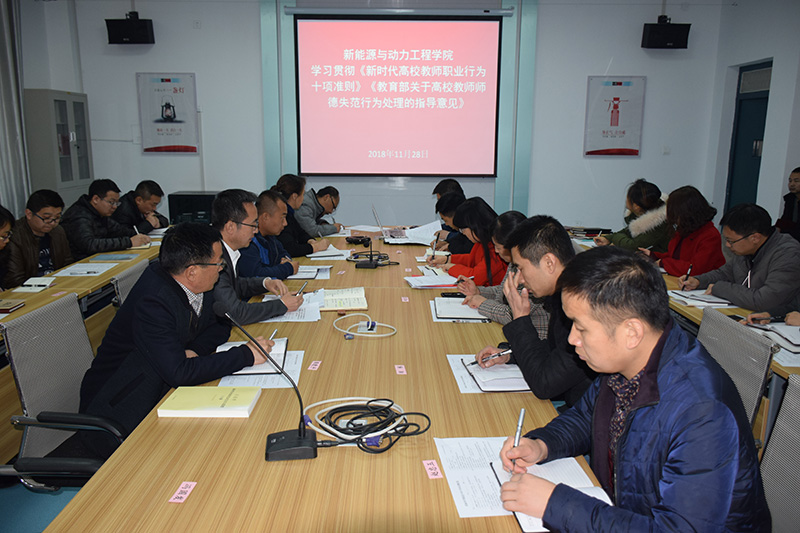 新能源與動力工程學(xué)院召開召開教職工會議集中學(xué)習(xí)《新時代高校教師職業(yè)行為十項準(zhǔn)則》