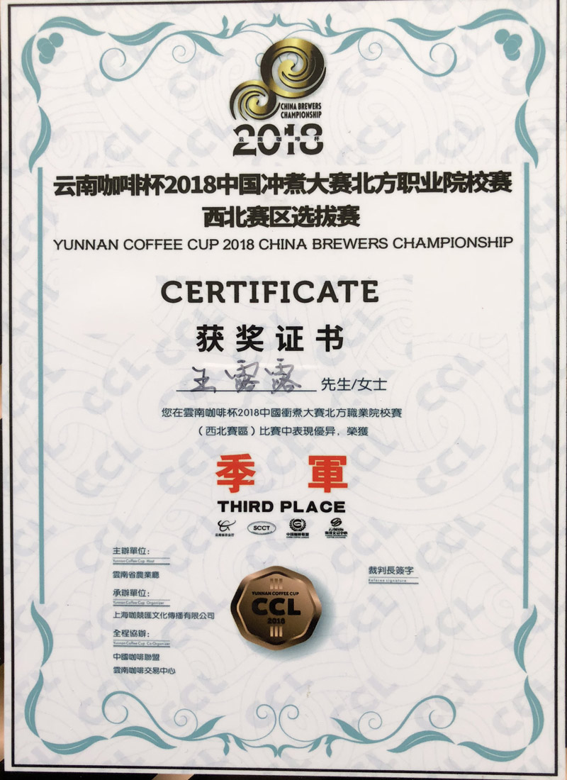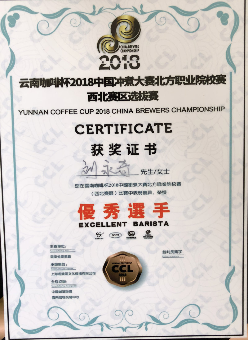 我院學(xué)生榮獲“云南咖啡杯2018中國(guó)沖煮大賽北方職業(yè)院校賽西北賽區(qū)選拔賽”季軍