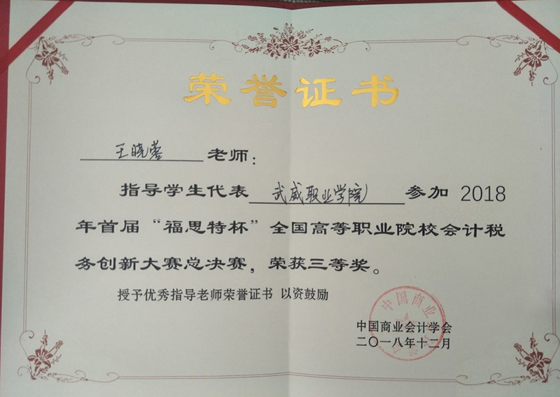本次比賽得到學院領導、系領導的高度重視與大力支持。經(jīng)濟管理系專門成立了輔導小組,嚴格按照國賽要求進行實戰(zhàn)訓練。近年來,經(jīng)濟管理系參加各級各類會計技能競賽,適時修訂會計人才培養(yǎng)方案,提升學生動手實踐能力,培養(yǎng)學生的職業(yè)核心和專業(yè)崗位能力。做到技能競賽與教學改革、人才培養(yǎng)相輔相成、相得益彰,使學生團隊合作能力、創(chuàng)新思維能力、職業(yè)能力不斷加強,實現(xiàn)了“以賽促教、以賽促學、以賽促改”的預期效果。經(jīng)濟管理系將以此為契機,不斷提高人才培養(yǎng)質(zhì)量,為學院優(yōu)質(zhì)院校建設增磚添瓦。