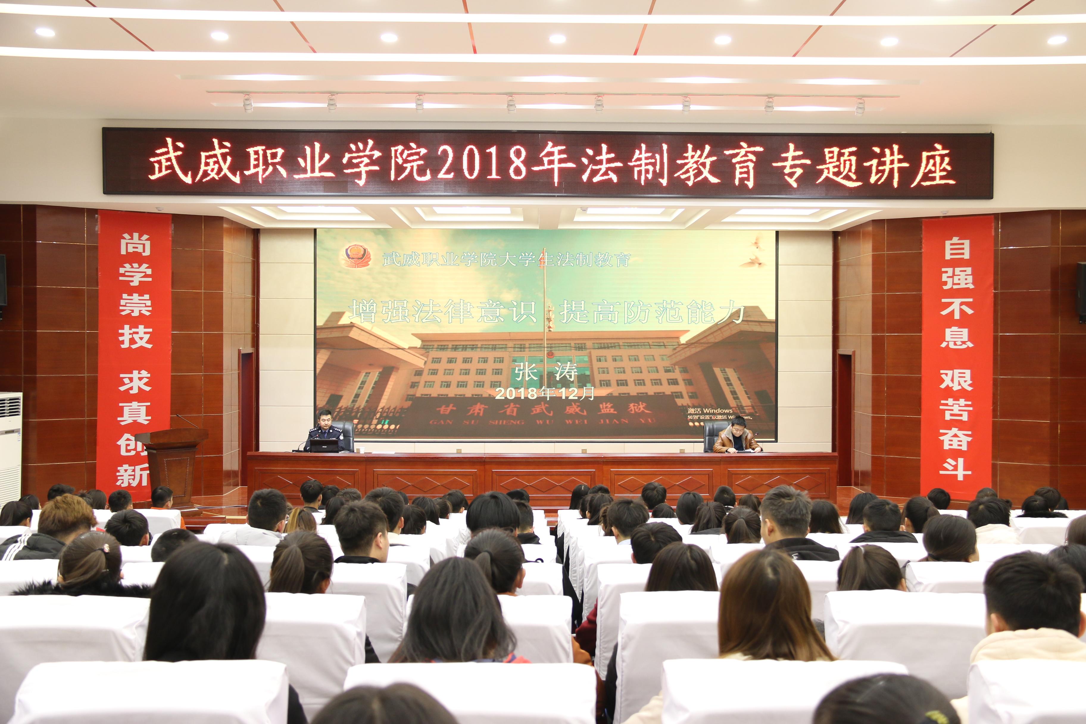 講座邀請了甘肅省武威監(jiān)獄第七監(jiān)區(qū)副監(jiān)區(qū)長張濤警官主講。講座采取以案說法、以案學法、以法警示的方式,圍繞校園欺凌、網(wǎng)絡詐騙、校園貸等熱點問題,分析了目前青少年違法犯罪的現(xiàn)狀,闡釋了法律對于維護社會秩序、影響人們生活的重要性,深入淺出地講解了大學生應該如何遵紀守法、如何預防犯罪、如何防止不法侵害、打擊犯罪及自我防范的一些基本方法,教導同學們要增強法律意識,提高防范能力,做一名知法、懂法、守法、用法的合格公民。