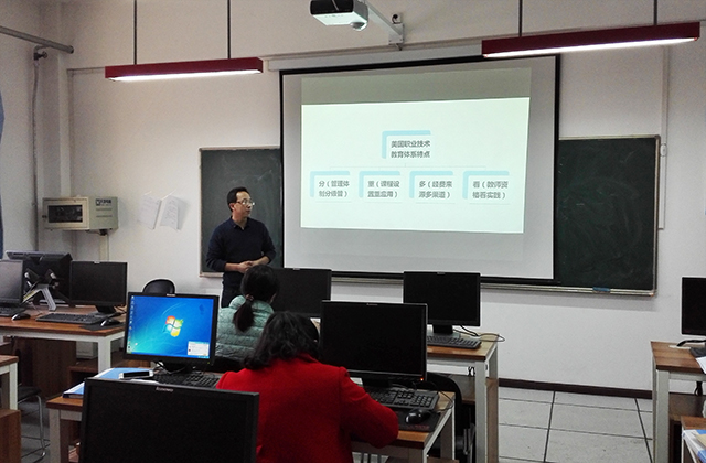 匯報(bào)會(huì)上以《美國(guó)社區(qū)學(xué)院的那些事兒》為開(kāi)場(chǎng),從培訓(xùn)目的、培訓(xùn)背景、考察紀(jì)要、先進(jìn)經(jīng)驗(yàn)四個(gè)方面介紹了美國(guó)大學(xué)教育的先進(jìn)理念等方面做了介紹;重點(diǎn)介紹了考察學(xué)習(xí)加州圣伯納迪諾社區(qū)學(xué)院、希勒斯學(xué)院、莫圣安東尼奧學(xué)院、洛杉磯商業(yè)技術(shù)學(xué)院、洛杉磯港高大學(xué)5所大學(xué)的情況和感受。張偉東老師對(duì)以上各學(xué)校的基本情況、辦學(xué)條件、專(zhuān)業(yè)設(shè)置等做了詳細(xì)的介紹,王鵬元對(duì)美國(guó)式大學(xué)教育的人才培養(yǎng)模式、學(xué)生狀況、運(yùn)行模式、學(xué)歷層次做了重點(diǎn)講解。同時(shí)二位老師通過(guò)考察學(xué)習(xí),提出我校的師資和實(shí)驗(yàn)實(shí)訓(xùn)條件建設(shè)、辦學(xué)模式等現(xiàn)狀和美國(guó)教育體系進(jìn)行詳細(xì)的對(duì)比,為我系以后的發(fā)展提供了參考。