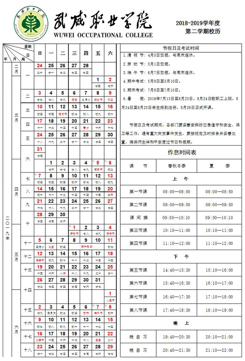 武威職業(yè)學院2025年6月份值班值守安排表