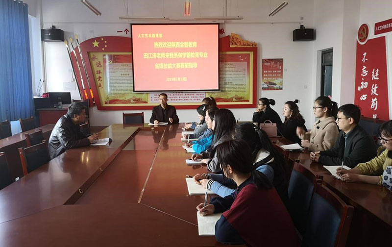 2019年3月13日下午,人文藝術(shù)教育系邀請陜西金智教育集團(tuán)講師、山西省“國培計(jì)劃”學(xué)前教育專業(yè)領(lǐng)域客座講師田江濤老師到我系進(jìn)行了學(xué)前教育專業(yè)省級技能大賽專題培訓(xùn)講座,并對2019年甘肅省職業(yè)院校學(xué)前教育專業(yè)技能比賽的流程進(jìn)行了指導(dǎo)。系副主任李欣、各專業(yè)教師及參賽學(xué)生參加。