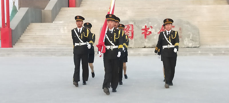 早晨7:20升旗儀式正式開始,在全體師生的注目禮下,英姿颯爽的國(guó)旗護(hù)衛(wèi)隊(duì)隊(duì)員們護(hù)送五星紅旗進(jìn)場(chǎng),伴隨著莊嚴(yán)的國(guó)歌,五星紅旗冉冉升起,迎風(fēng)飄揚(yáng),在場(chǎng)的每一個(gè)人向國(guó)旗行注目禮,深懷對(duì)祖國(guó)無(wú)限的熱愛和崇高的敬意。