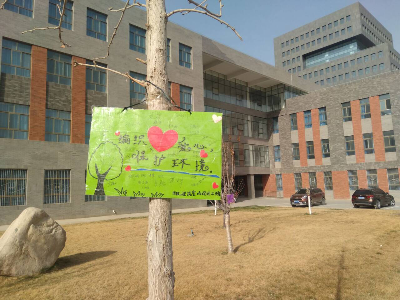 ? ?為助力創(chuàng)建文明城市,構(gòu)建文明綠色環(huán)保校園。4月2日建筑工程系學生分會聯(lián)合各班級在環(huán)境區(qū)域設立愛護校園草坪的標語牌活動。 ? ? ?