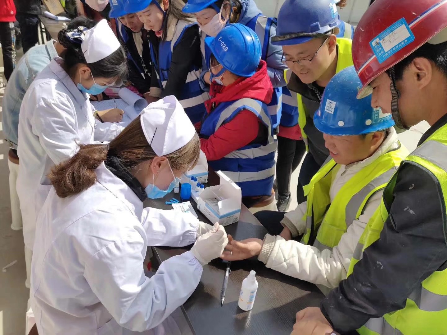 ? ? 到達活動現(xiàn)場后,疾控中心工作人員和志愿者們在聶老師和楊杰的安排下,按照預定方案迅速進入到工作狀態(tài) ,為工作在那里的300多名農民工人測量血壓、檢查視力、檢測丙肝和艾滋病病毒;宣傳健康知識并贈送春季常見傳染疾病及艾滋病病毒預防宣傳手冊;活動結束時,還為中建四局的農民工人發(fā)放了活動紀念品。
