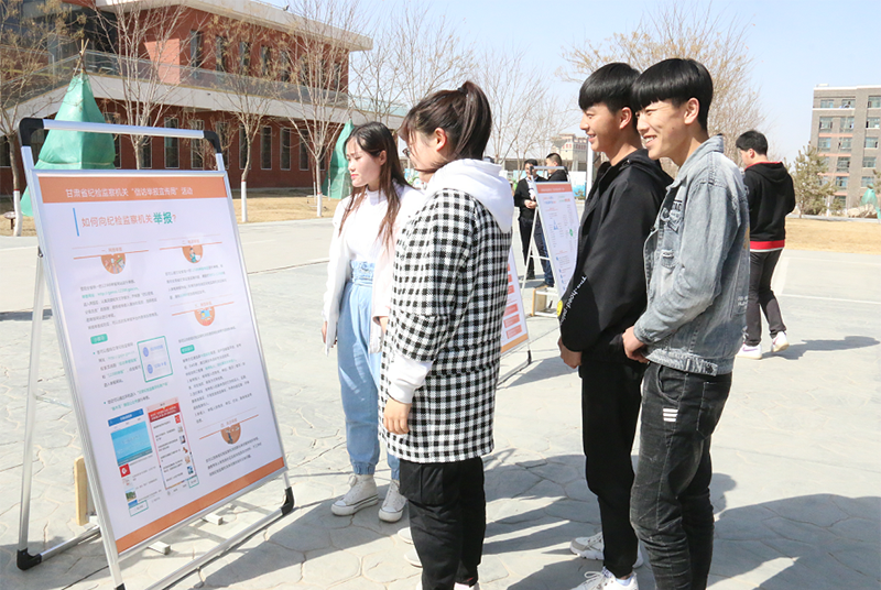 2019年3月21日下午15時,武威職業(yè)學(xué)院開展了“信訪舉報(bào)宣傳周”活動。市紀(jì)委派駐市教育局紀(jì)檢組車旭如、學(xué)院紀(jì)委書記張富國參加了活動。