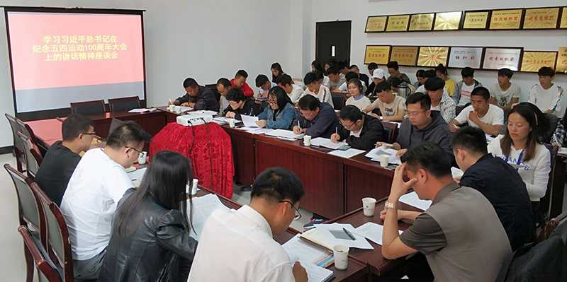 會上,參會人員認真學習了習總書記在紀念五四運動100周年大會上發(fā)表的講話內(nèi)容。院團委負責人從政治責任的高度、使命擔當?shù)囊?、實際行動的落實三個方面對各級團組織學習宣傳貫徹講話精神進行了要求。