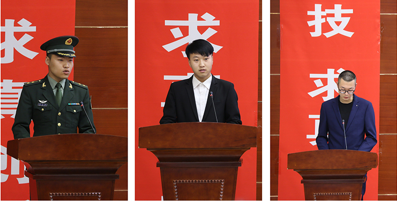 在啟動儀式上,現(xiàn)役軍人代表31666部隊防化營防化二連排長唐功財、學(xué)院退役大學(xué)生代表李乾和入伍意愿大學(xué)生代表李宏飛進(jìn)行了發(fā)言,講出了各自的感想和感受。