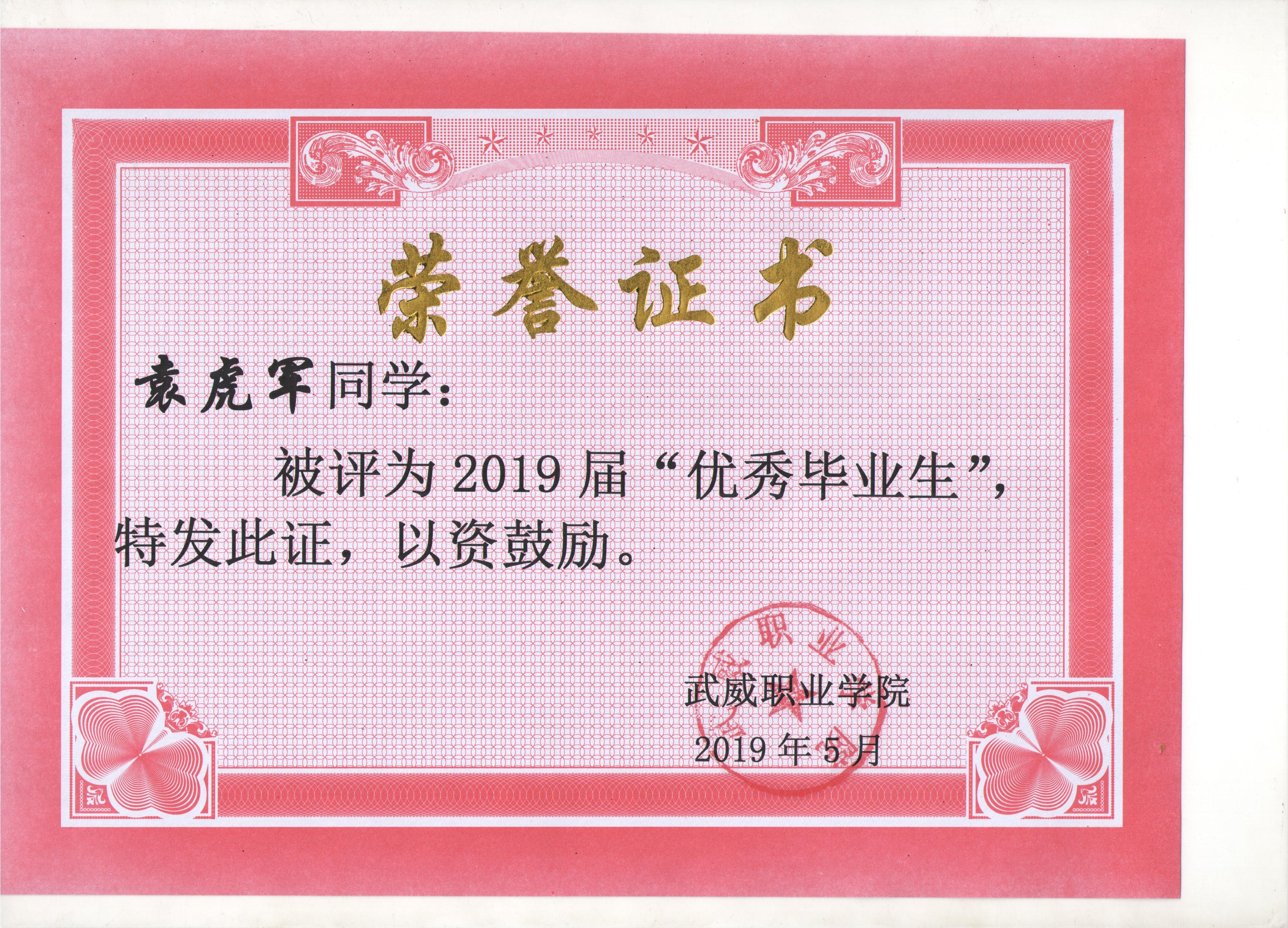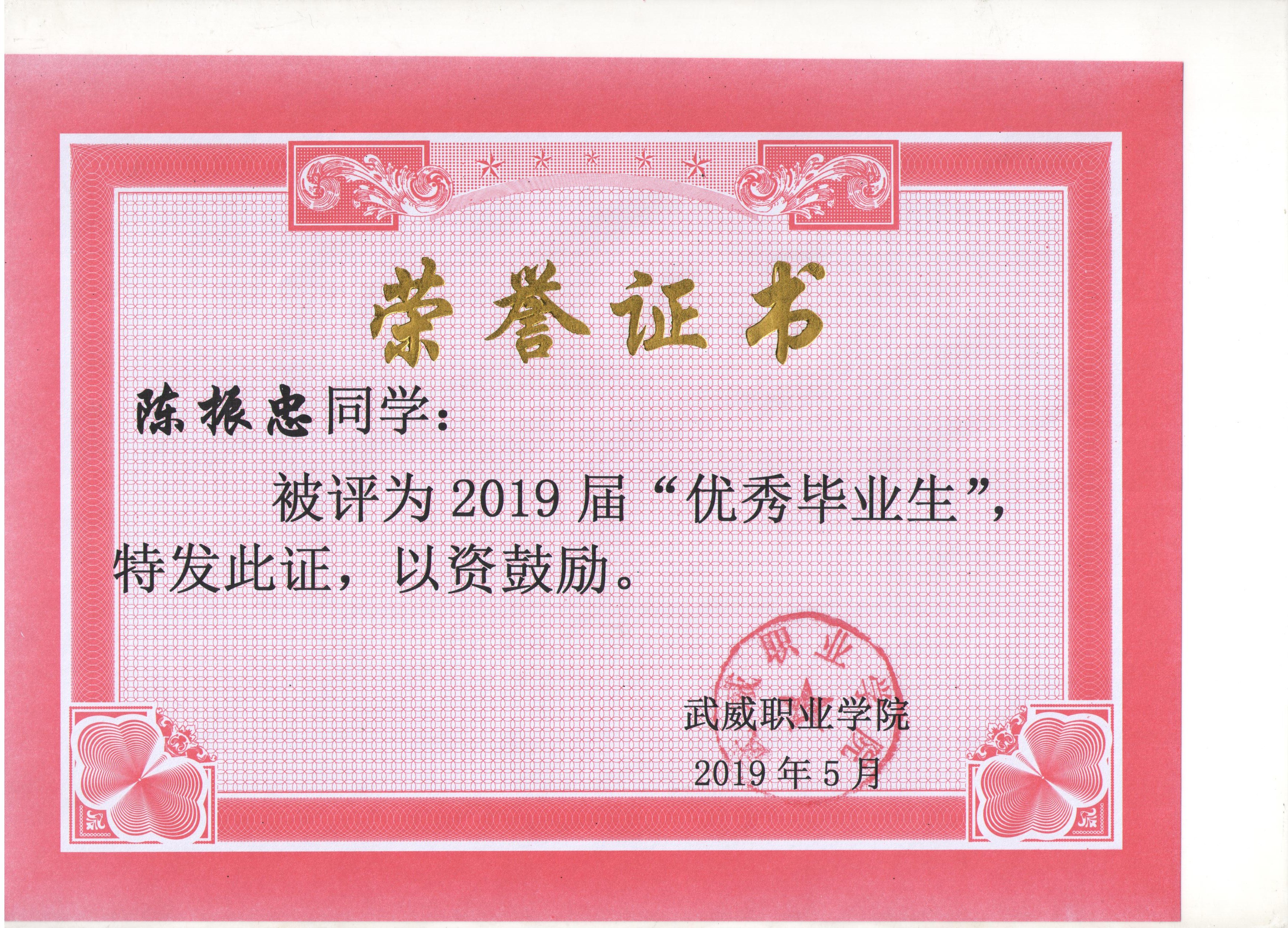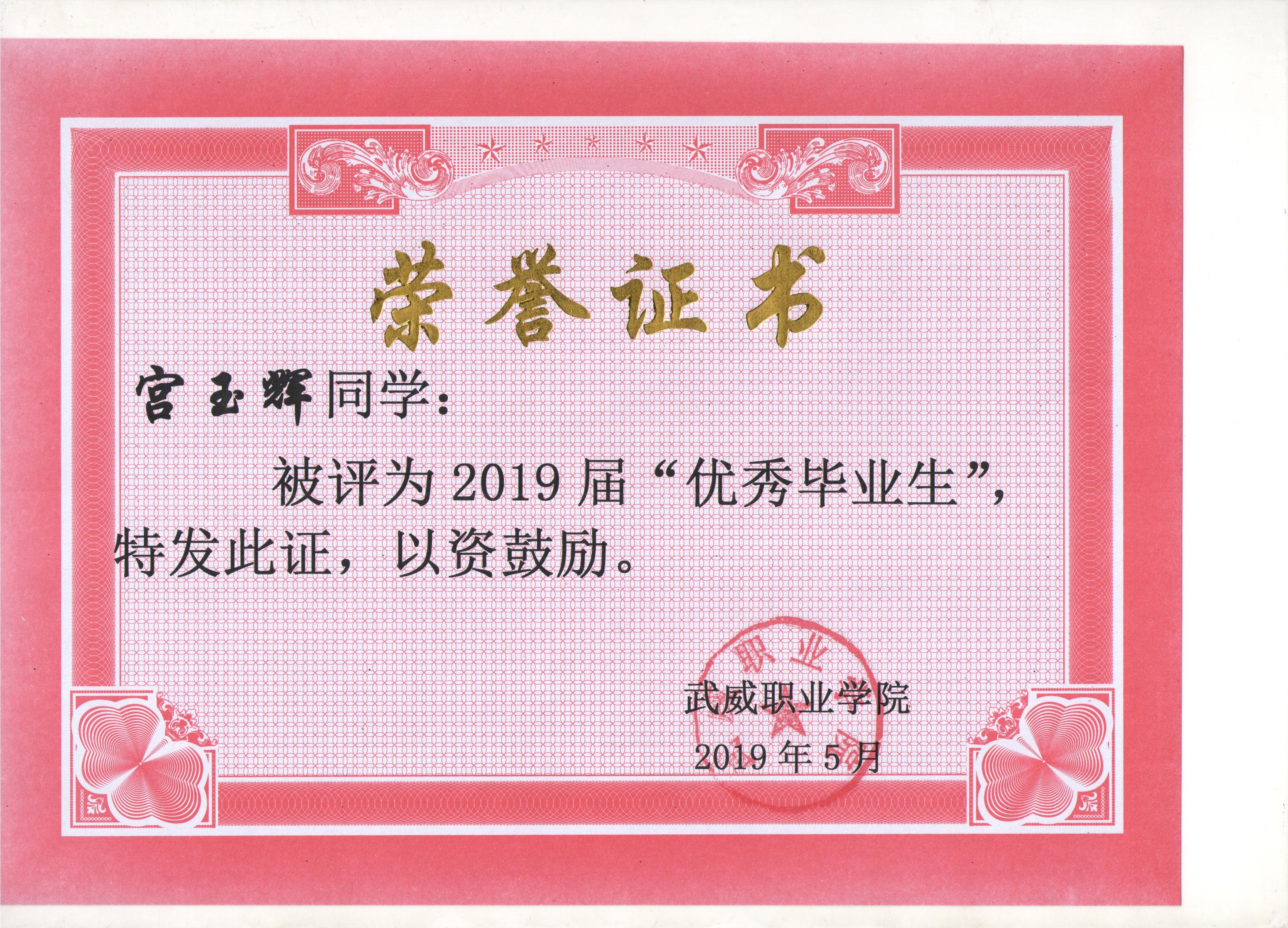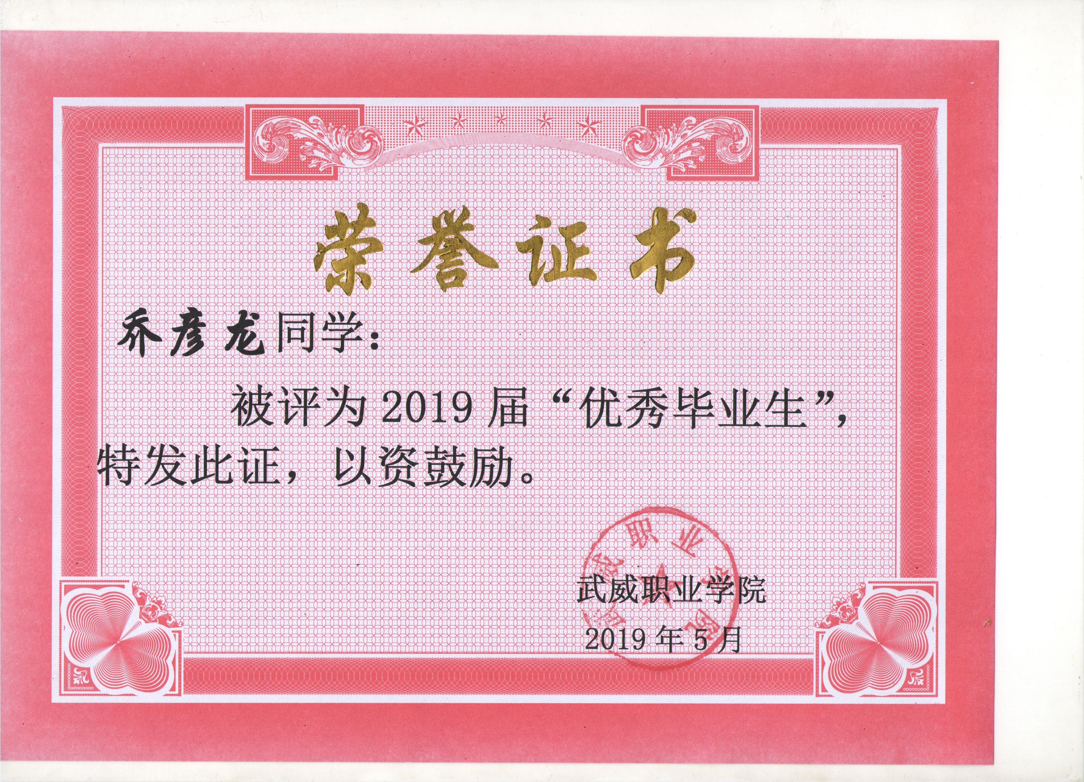 我系蔡少榮等19名同學(xué)榮獲武威職業(yè)學(xué)院2019屆“優(yōu)秀畢業(yè)生”榮譽稱號