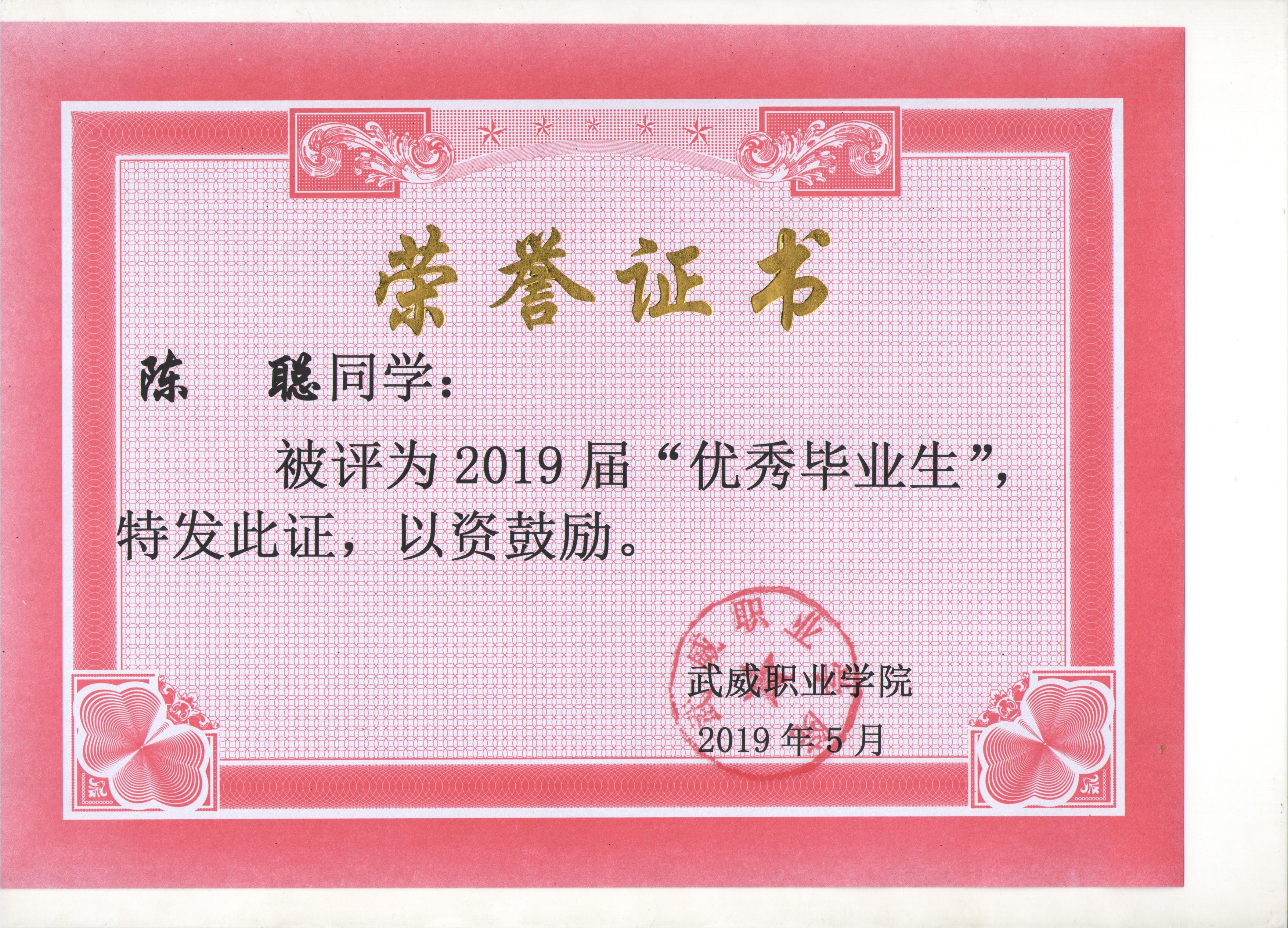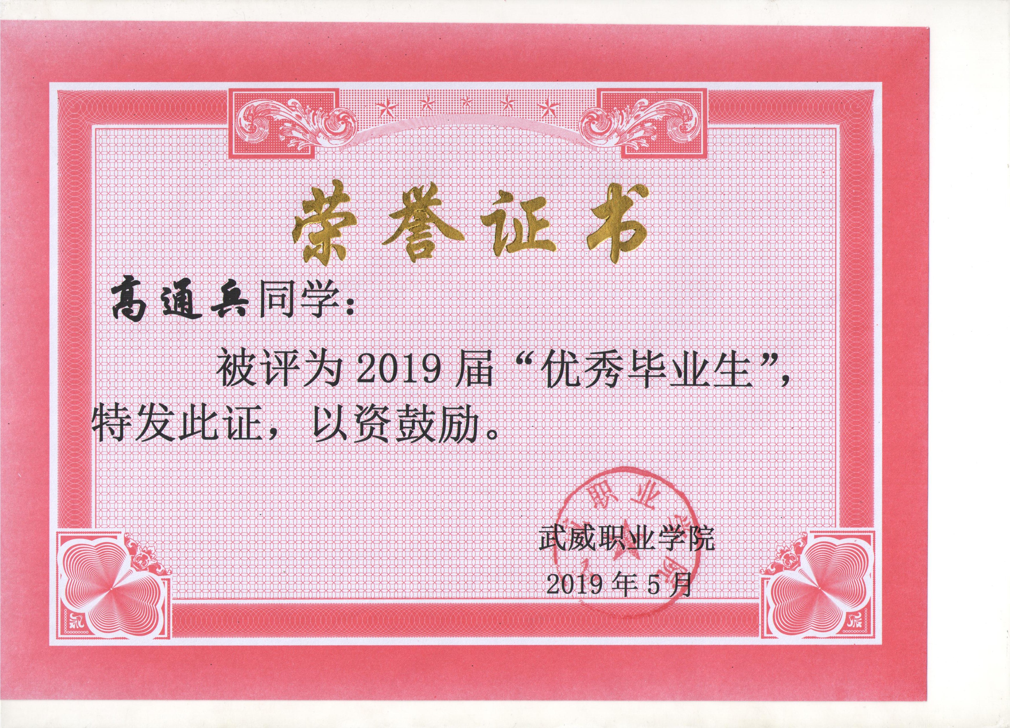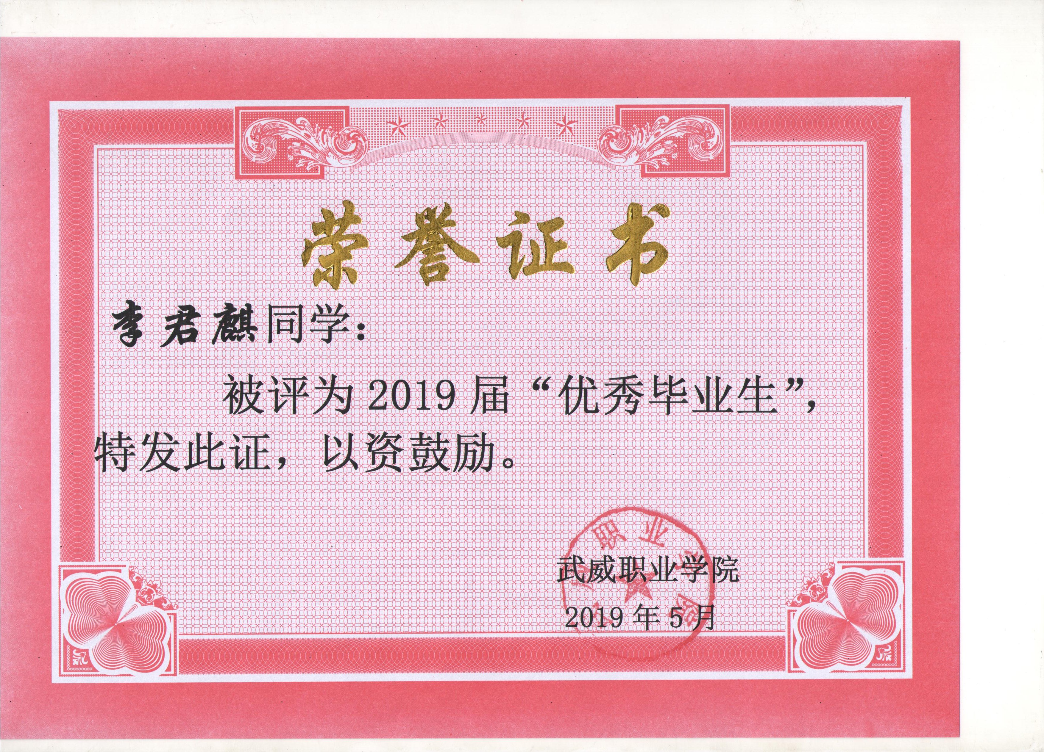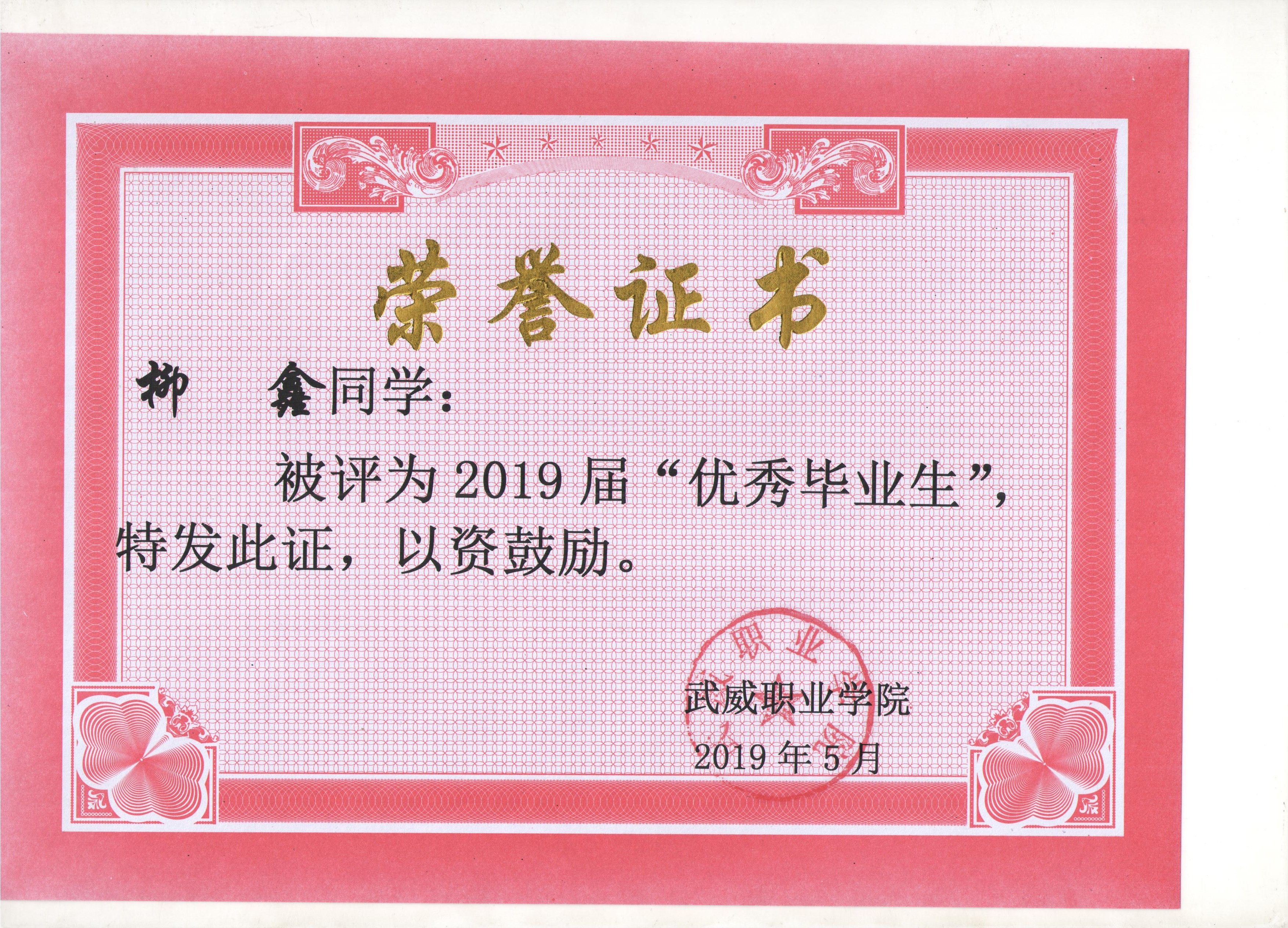 我系蔡少榮等19名同學(xué)榮獲武威職業(yè)學(xué)院2019屆“優(yōu)秀畢業(yè)生”榮譽稱號