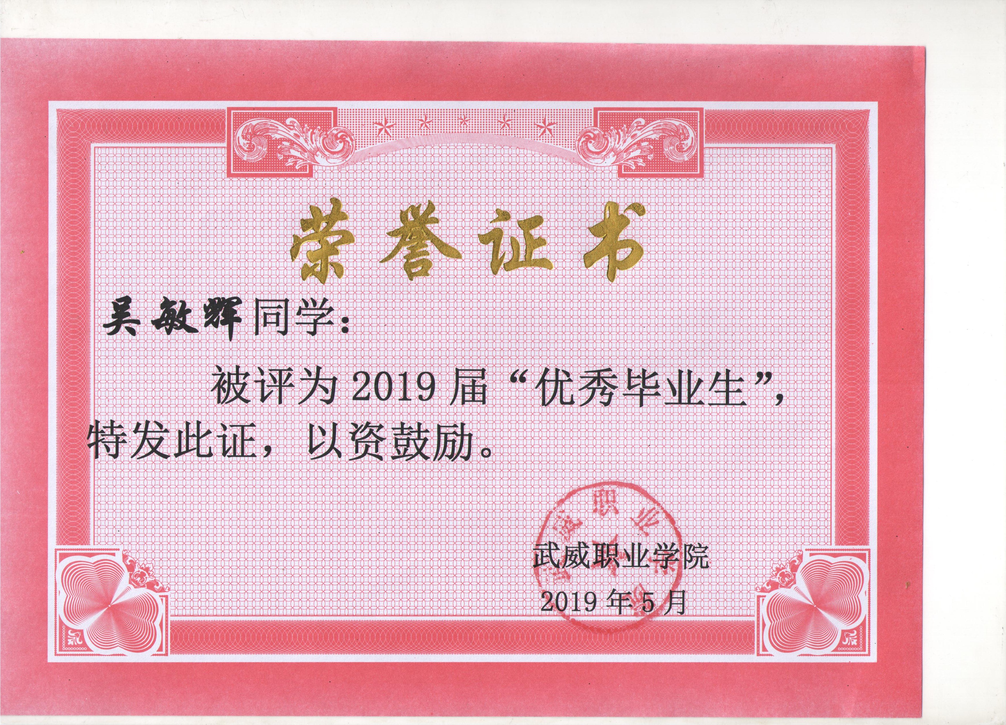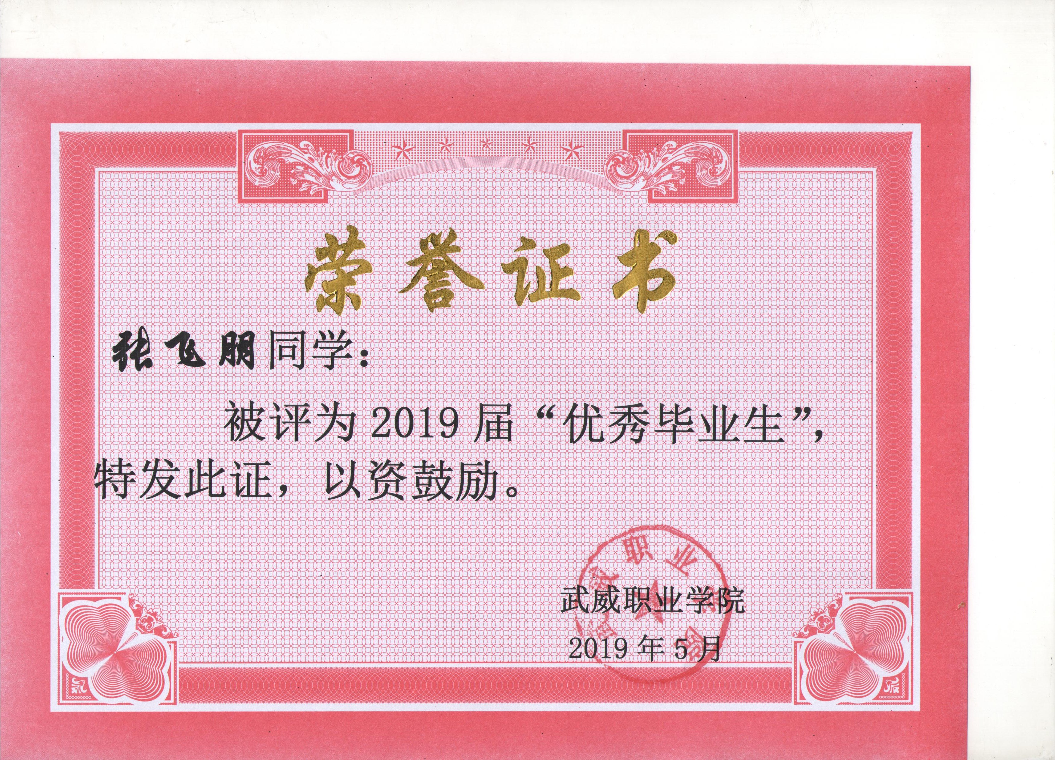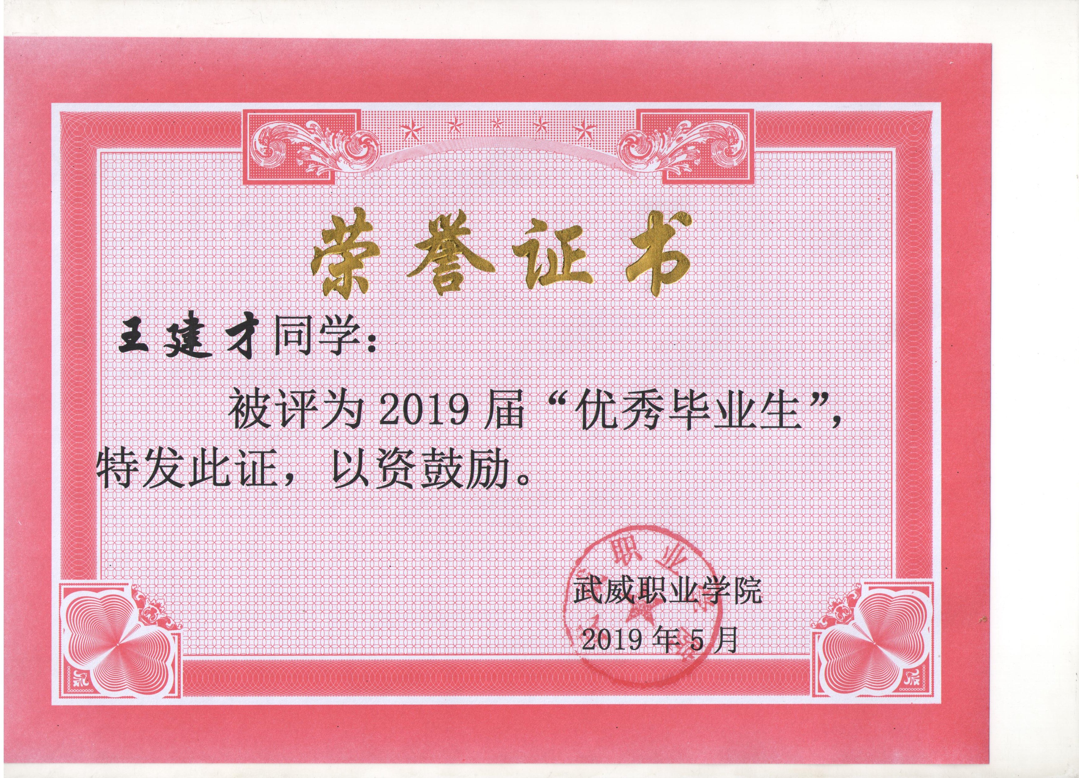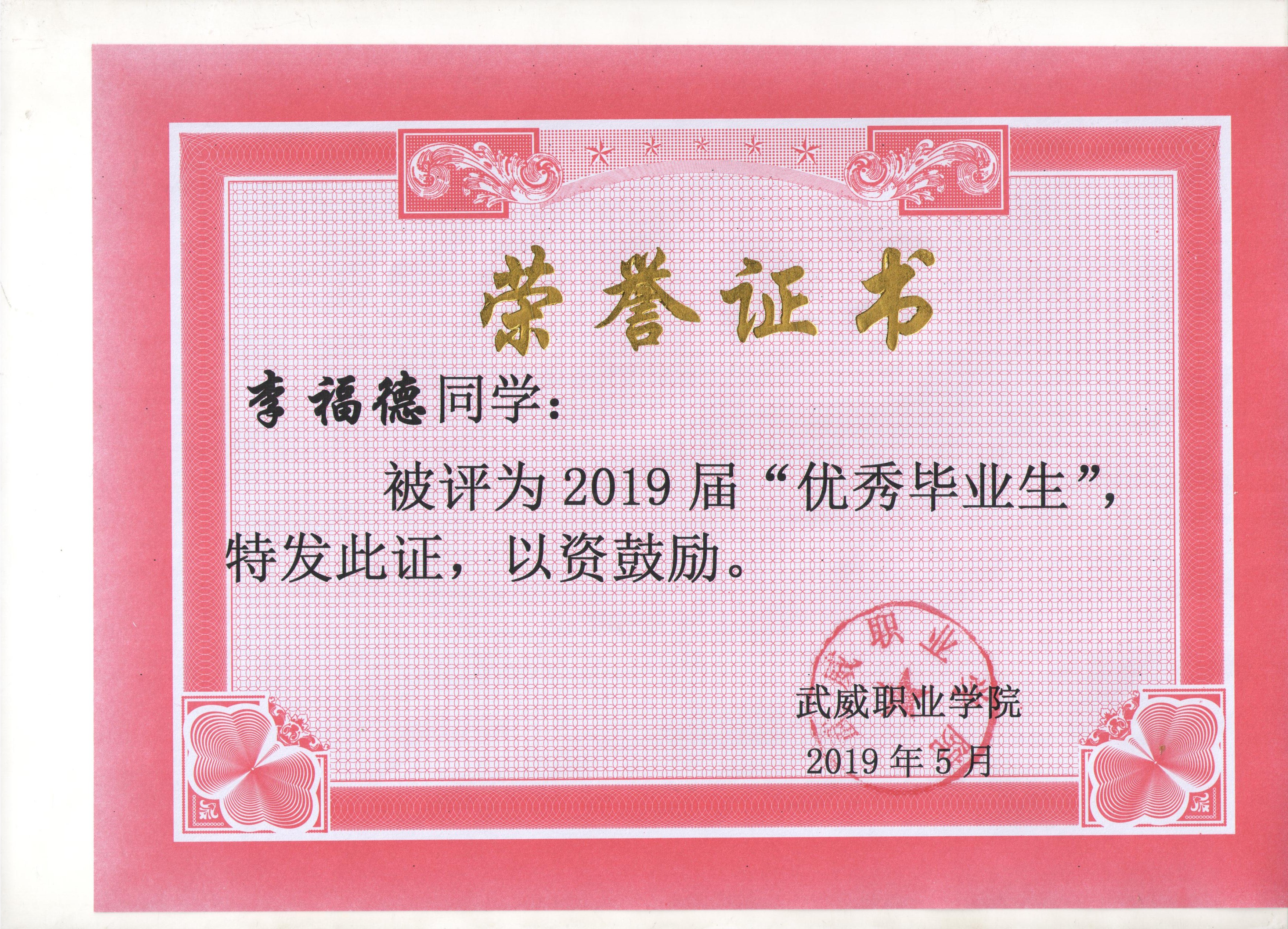 我系蔡少榮等19名同學(xué)榮獲武威職業(yè)學(xué)院2019屆“優(yōu)秀畢業(yè)生”榮譽稱號