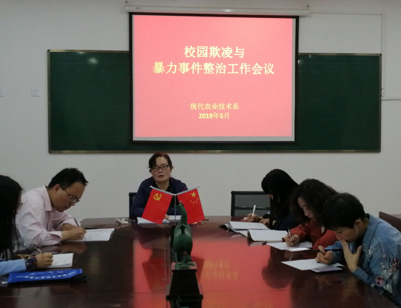 5月17日,現(xiàn)代農業(yè)技術系召開“校園欺凌與暴力事件”整治工作會議,會議由系黨總支書記晏素珍通知主持,全體班主任及輔導員參加了會議。