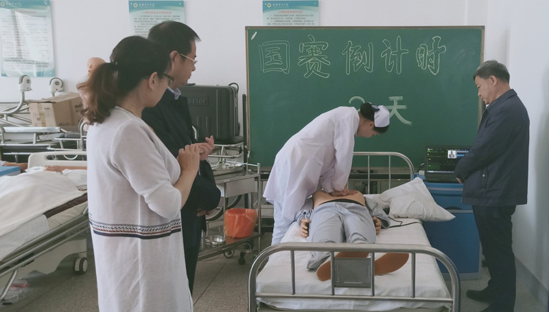院領(lǐng)導(dǎo)高度重視此次比賽,全力支持大賽工作,時(shí)刻關(guān)注賽前訓(xùn)練情況。學(xué)院黨委書記趙明、副院長翟存祥、教務(wù)處處長仲生仁多次到訓(xùn)練現(xiàn)場觀看選手操作,并提出指導(dǎo)性的意見和建議。趙書記充分肯定了老師們的辛勤付出,要求輔導(dǎo)教師在訓(xùn)練中一定要堅(jiān)持高標(biāo)準(zhǔn)、嚴(yán)要求;鼓勵選手發(fā)揮潛能,賽出水平,實(shí)現(xiàn)新的突破。護(hù)理系成立了以黨總支書記張建輝、系主任韓曉萍牽頭,由專業(yè)教師組成大賽輔導(dǎo)小組,認(rèn)真解讀競賽規(guī)程,周密安排訓(xùn)練計(jì)劃,強(qiáng)化理論知識,細(xì)化操作項(xiàng)目,力爭在此次大賽中取得好成績。