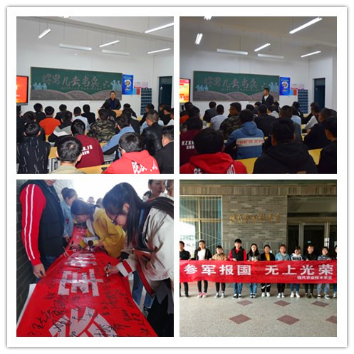 首先蔡海老師向同學(xué)們細(xì)致地講解了今年的征兵條件、報(bào)名方法及相關(guān)優(yōu)待政策,深入宣傳依法服兵役的積極意義,鼓勵(lì)適齡青年積極報(bào)名應(yīng)征,報(bào)效祖國(guó)。同時(shí)邀請(qǐng)2017級(jí)設(shè)施農(nóng)業(yè)與裝備大專(zhuān)班趙文文同學(xué)做了個(gè)人事跡匯報(bào)。該生曾在陸軍某部服役,現(xiàn)光榮退伍,回校就讀。交流中,他鼓勵(lì)同學(xué)們要敢于有夢(mèng)、敢于追夢(mèng)、敢于圓夢(mèng),讓青春在軍營(yíng)的歷練中、在為祖國(guó)的奉獻(xiàn)中閃光。他還生動(dòng)的講述了部隊(duì)的生活和訓(xùn)練情況,這段經(jīng)歷使他收獲了遠(yuǎn)大的理想信念,培養(yǎng)了良好的行為習(xí)慣,練就了強(qiáng)健的身體,這些將會(huì)讓他終身受益?;顒?dòng)最后進(jìn)行了“參軍報(bào)國(guó),無(wú)上光榮”主題簽名儀式。