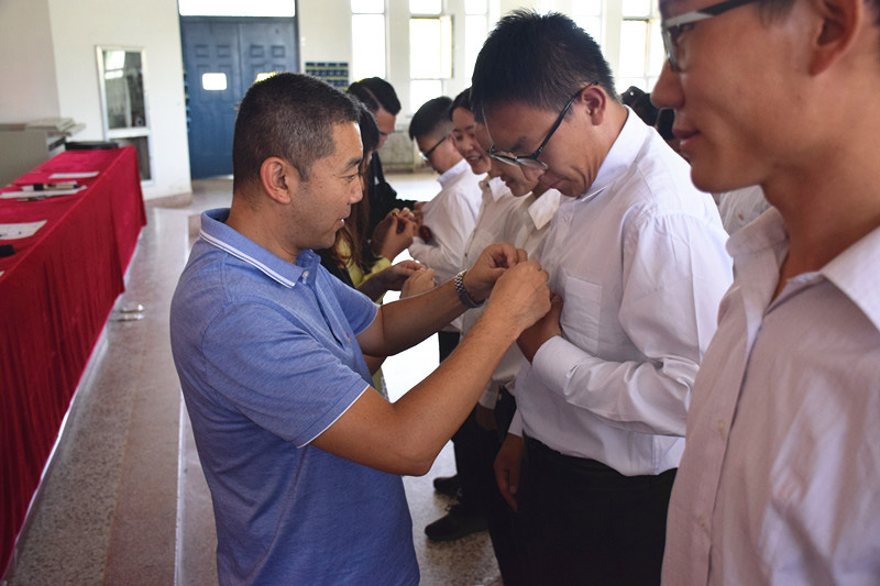羅小勇為新黨員佩戴黨徽,并代表學院黨委對新入黨的56名預備黨員表示熱烈的祝賀和歡迎。他強調,作為預備黨員,一要恪守入黨誓詞,踐行莊嚴承諾,堅定不移地從思想和行動上與黨組織保持高度一致,牢固樹立“四個意識”,增強“四個自信”,堅決做到“兩個維護”,激發(fā)奮發(fā)向上的學習、生活和工作熱情,努力營造踏實務實的學習氛圍;二要充分發(fā)揮先鋒模范作用,在各自的學習生活中體現(xiàn)黨的先進性,成為同學中的旗幟標桿力量;三要牢記全心全意為人民服務的宗旨,努力實踐,立志成為中國特色社會主義事業(yè)奮斗終身的有用人才。