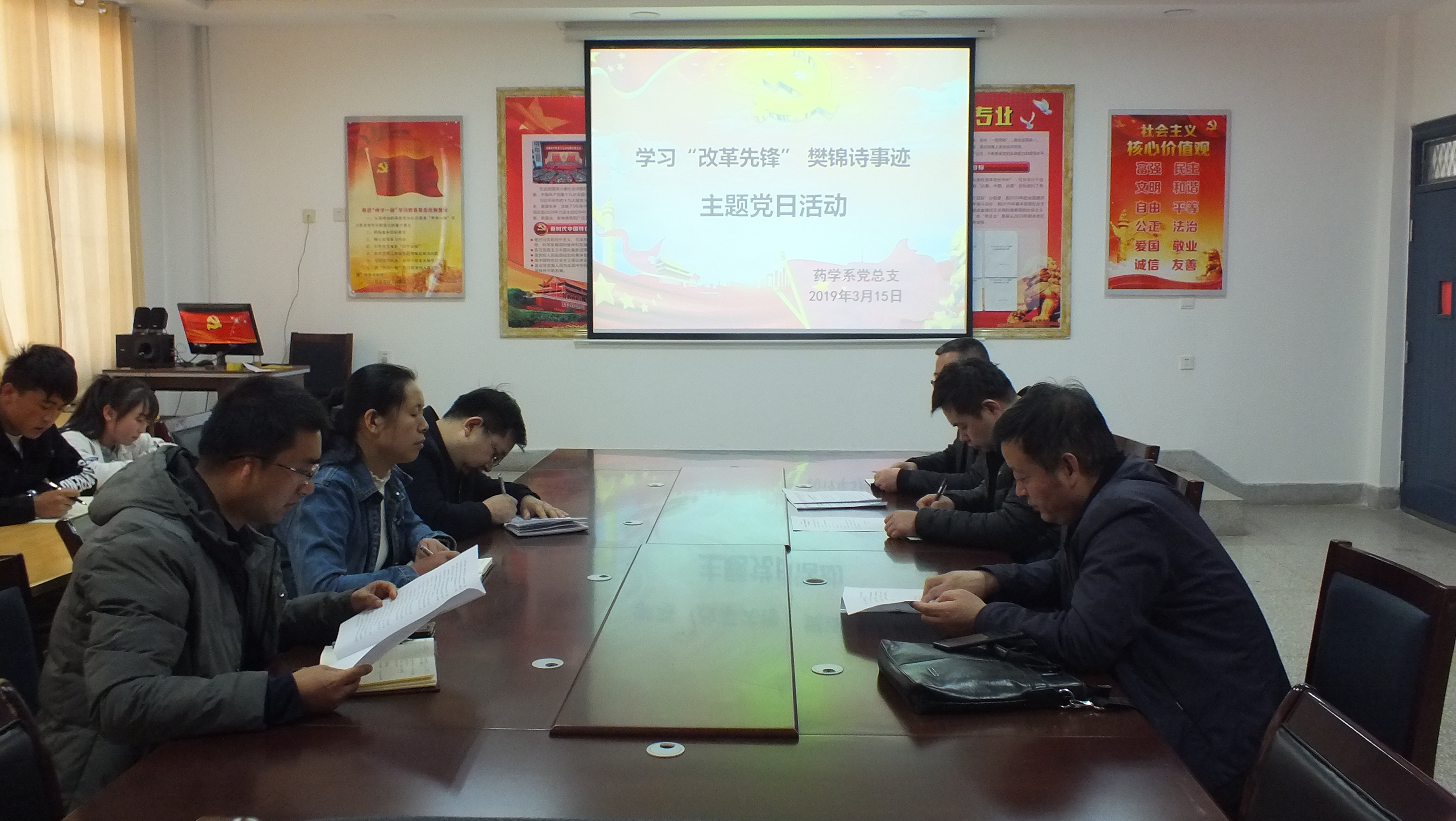 為響應(yīng)榜樣號(hào)召,傳承時(shí)代精神,3月15日,藥學(xué)系黨總支組織全體黨員在明遠(yuǎn)樓103黨員活動(dòng)室,開(kāi)展了學(xué)習(xí)“改革先鋒”樊錦詩(shī)先進(jìn)事跡主題黨日活動(dòng)。系主任魏潤(rùn)明參加了此次活動(dòng),系黨總支副書(shū)記單光年主持活動(dòng)。