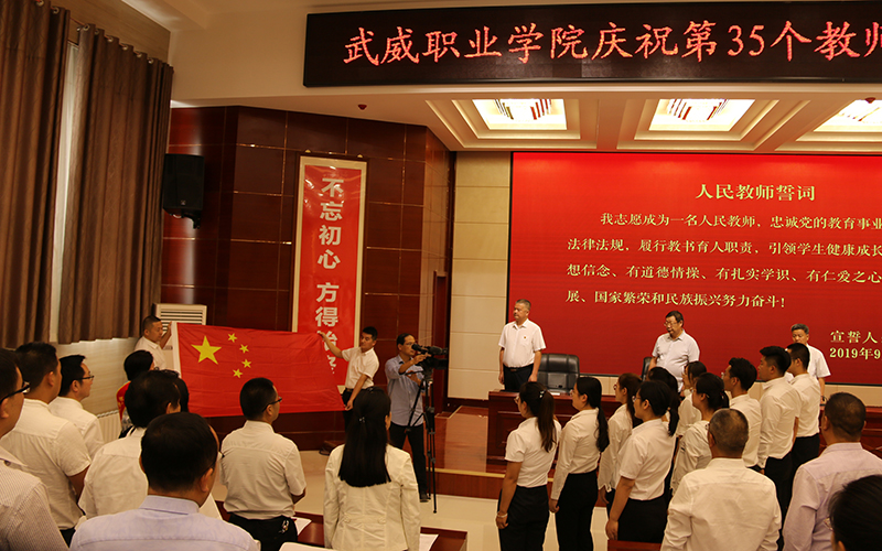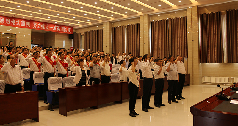 以“慶祝新中國七十華誕 弘揚(yáng)新時(shí)代尊師風(fēng)尚”為主題的教師節(jié)慶祝大會(huì)在莊嚴(yán)的《國歌》聲中拉開帷幕。學(xué)院黨委書記、院長(zhǎng)趙明帶領(lǐng)全體教師重溫了教師誓詞,鏗鏘有力的誓詞、莊嚴(yán)的承諾,進(jìn)一步堅(jiān)定了廣大教師立德樹人的理想和信念。黨委副書記翟存祥領(lǐng)學(xué)了高校教師行為準(zhǔn)則,對(duì)高校教師行為提出了要求。