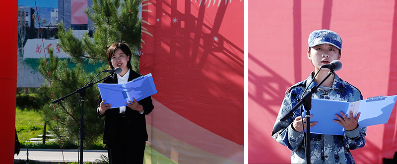 伴隨著莊嚴(yán)肅穆的國(guó)歌,大會(huì)正式拉開(kāi)帷幕。在激昂的音樂(lè)聲下,國(guó)旗護(hù)衛(wèi)隊(duì)向我們走來(lái),他們目光堅(jiān)毅、身姿矯健、步伐整齊有力,彰顯了須眉巾幗、志在四方的豪情壯志?!安煌跣?、牢記使命”,“尚學(xué)崇技、求真創(chuàng)新”,“立德樹(shù)人、服務(wù)發(fā)展、促進(jìn)就業(yè)、適應(yīng)需要”鏗鏘有力的口號(hào)生動(dòng)的展現(xiàn)了新時(shí)代大學(xué)生的青春風(fēng)貌。