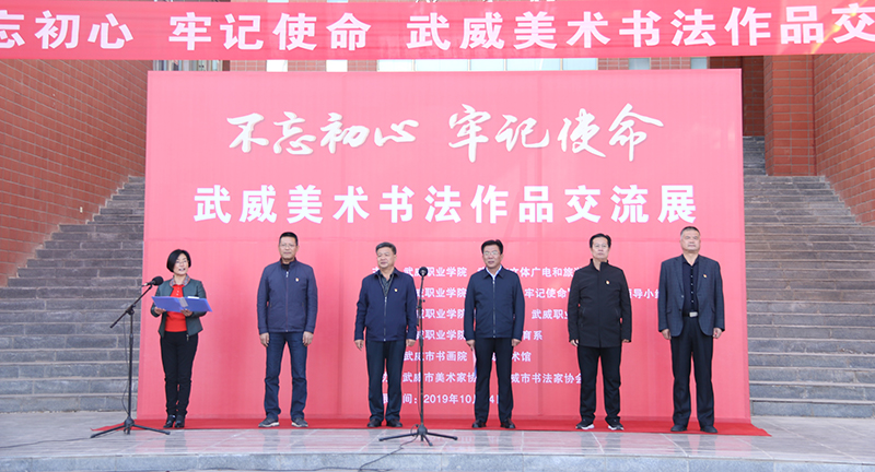 為深入開展“不忘初心牢記使命”主題教育,10月14日下午,武威職業(yè)學(xué)院、武威市文體廣電和旅游局舉辦的“不忘初心、牢記使命”武威美術(shù)書法作品交流展在學(xué)院大學(xué)生活動(dòng)中心前廣場隆重開幕。