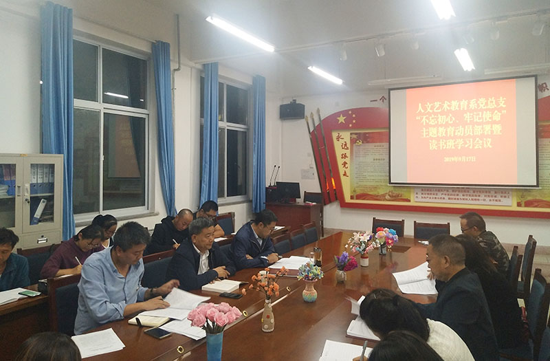 人文藝術(shù)教育系成立以黨總支書記為組長,系主任為副組長全體支部委員為成員的“不忘初心、牢記使命”主題教育領(lǐng)導(dǎo)小組;制定人文藝術(shù)教育系黨總支“不忘初心、牢記使命”主題教育工作方案和人文藝術(shù)教育系黨總支讀書班學(xué)習(xí)實(shí)施方案;召開人文藝術(shù)教育系黨總支“不忘初心、牢記使命”主題教育學(xué)習(xí)動(dòng)員大會(huì)暨讀書班學(xué)習(xí)會(huì)議啟動(dòng)儀式,動(dòng)員安排主題教育工作。