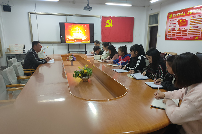 學生支部書記姚盈老師帶領(lǐng)全體黨員學生重溫學習習總書記在黨的十九大報告中提出的“不忘初心,牢記使命”,用黨的理論武裝頭腦,加強青年學生的理論素養(yǎng)。