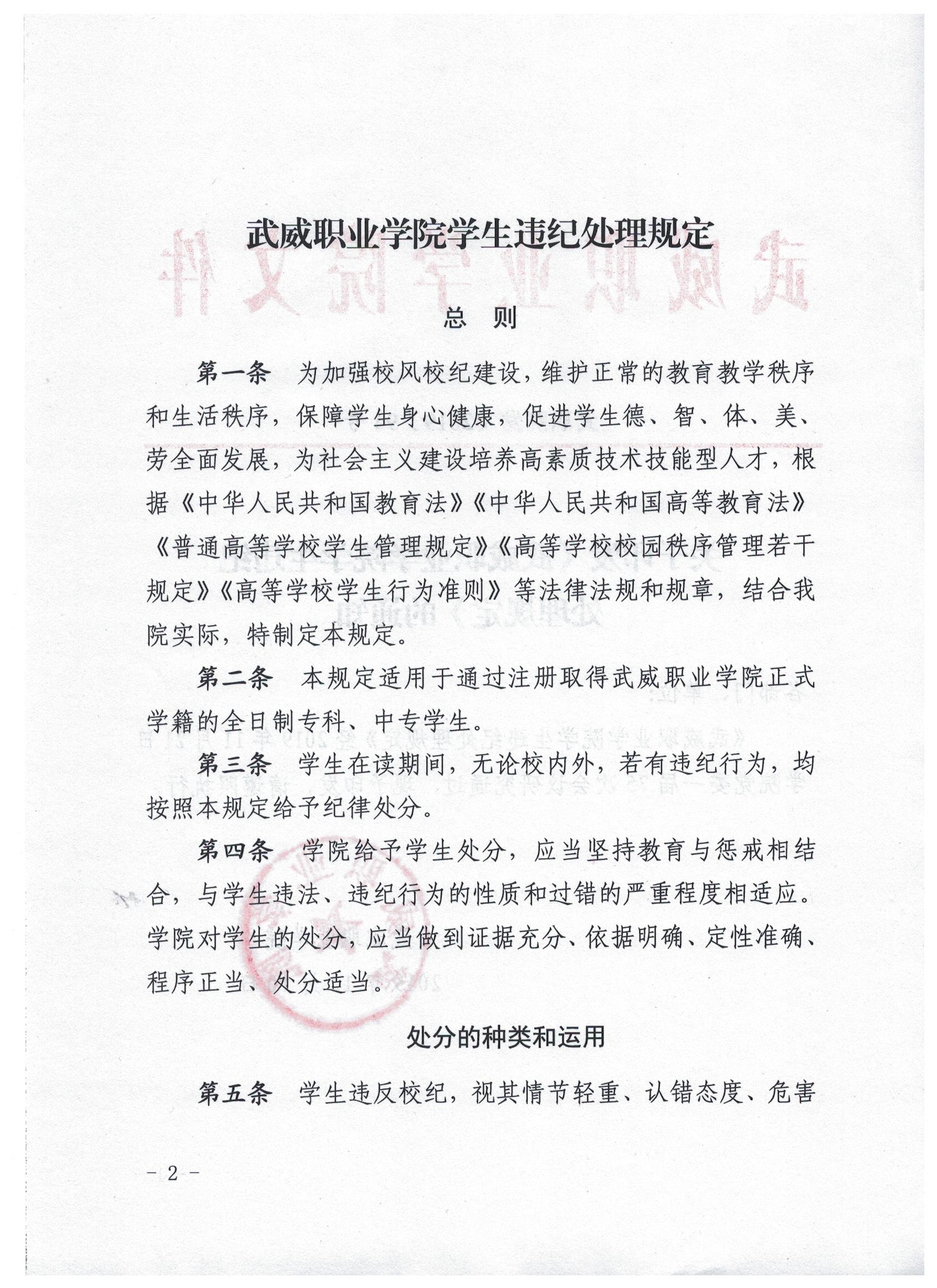 武威職業(yè)學(xué)院學(xué)生違紀(jì)處理規(guī)定