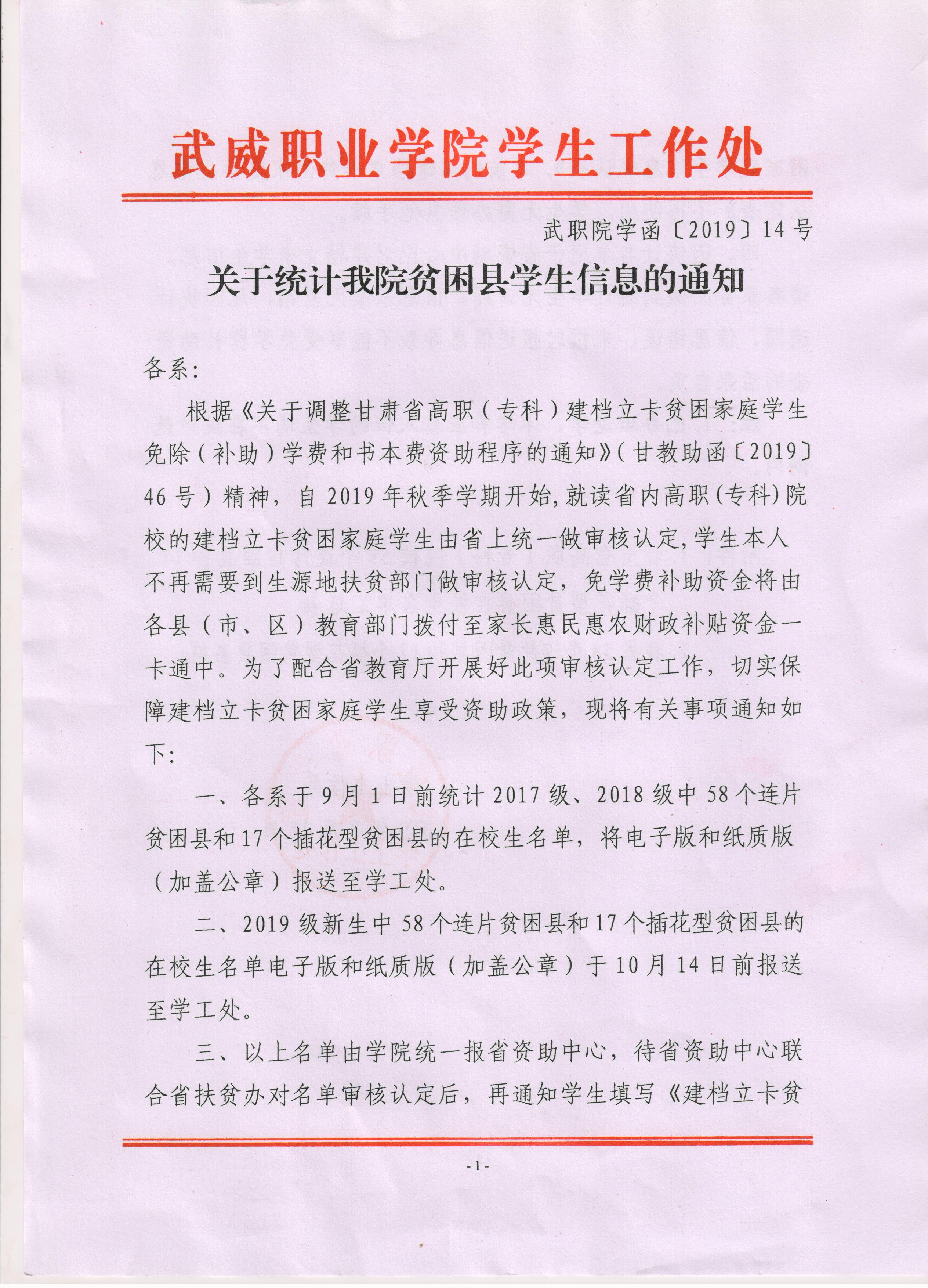 關(guān)于統(tǒng)計我院貧困縣學(xué)生信息的通知