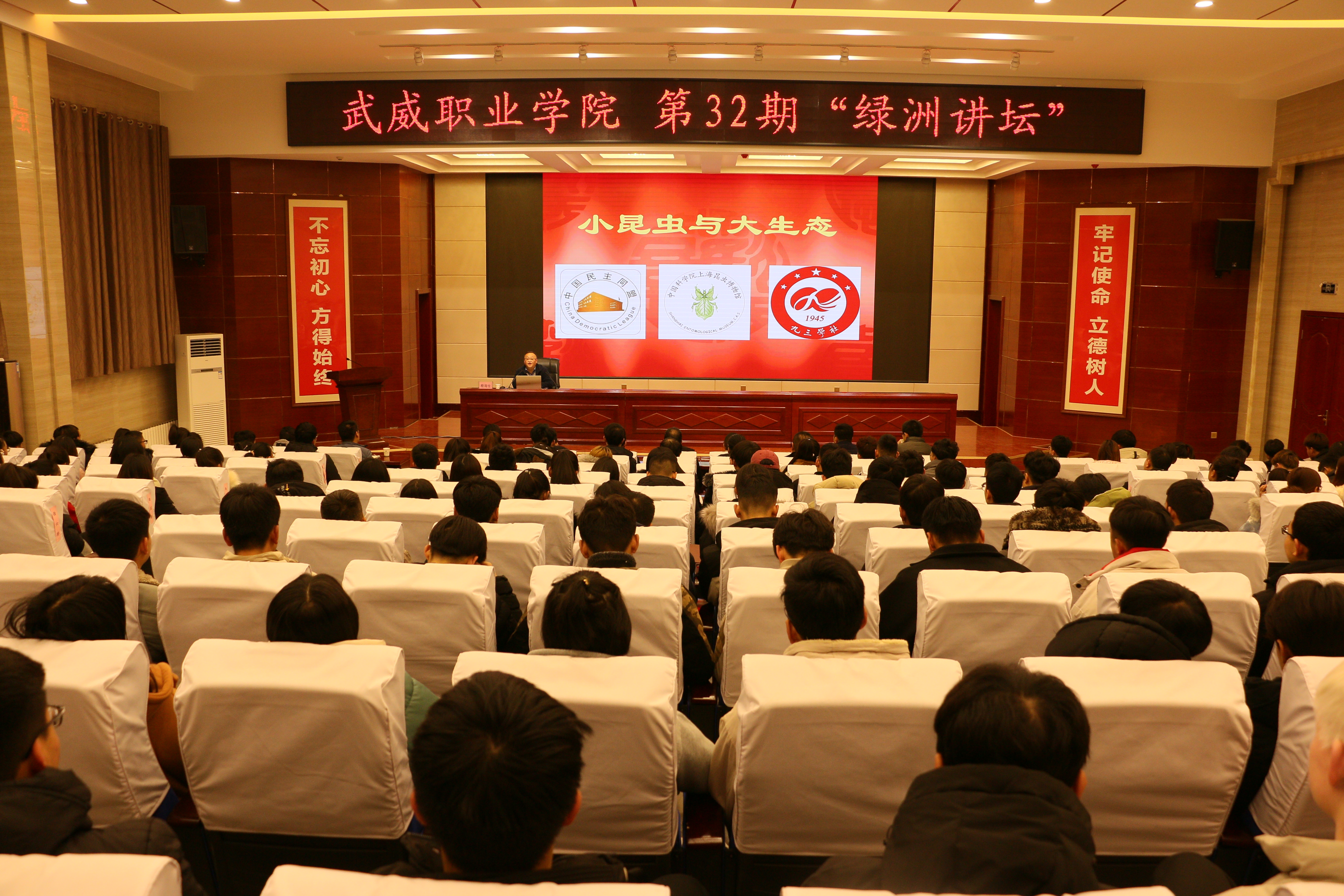 12月18日,武威職業(yè)學(xué)院“綠洲講壇”第32期在學(xué)院菁英廳舉行,本期活動邀請到中國科學(xué)院上海昆蟲博物館館長殷海生教授作主題為“小昆蟲與大生態(tài)”的報告。學(xué)院現(xiàn)代農(nóng)業(yè)技術(shù)系相關(guān)專業(yè)學(xué)生、中科低碳新能源技術(shù)學(xué)院師生代表共220人聆聽了報告。本期講壇由能源工程系黨總支書記胡建宏主持。