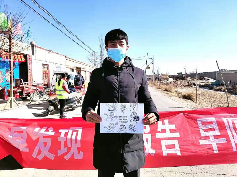 能源工程系2019級應(yīng)用化工大專班學(xué)生王浩楠,在武威市涼州區(qū)發(fā)放鎮(zhèn)新興村疫情防控工作站參加勸導(dǎo)防疫工作,主要在交通道路上對來往人員和車輛進(jìn)行排查登記,向村民宣傳疫情防護(hù)知識,在各隊(duì)會議室門口張貼宣傳橫幅,作為一名青年志愿者,為了守護(hù)家鄉(xiāng),也為了盡快打贏這場阻擊戰(zhàn),以實(shí)際行動(dòng)踐行共青團(tuán)員的青春誓言。